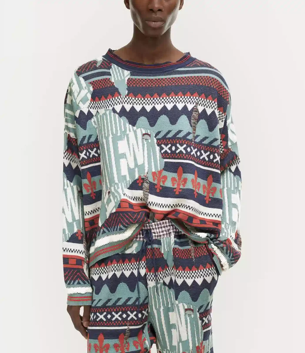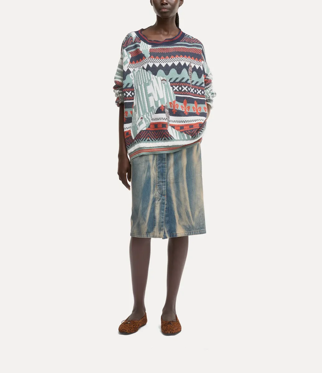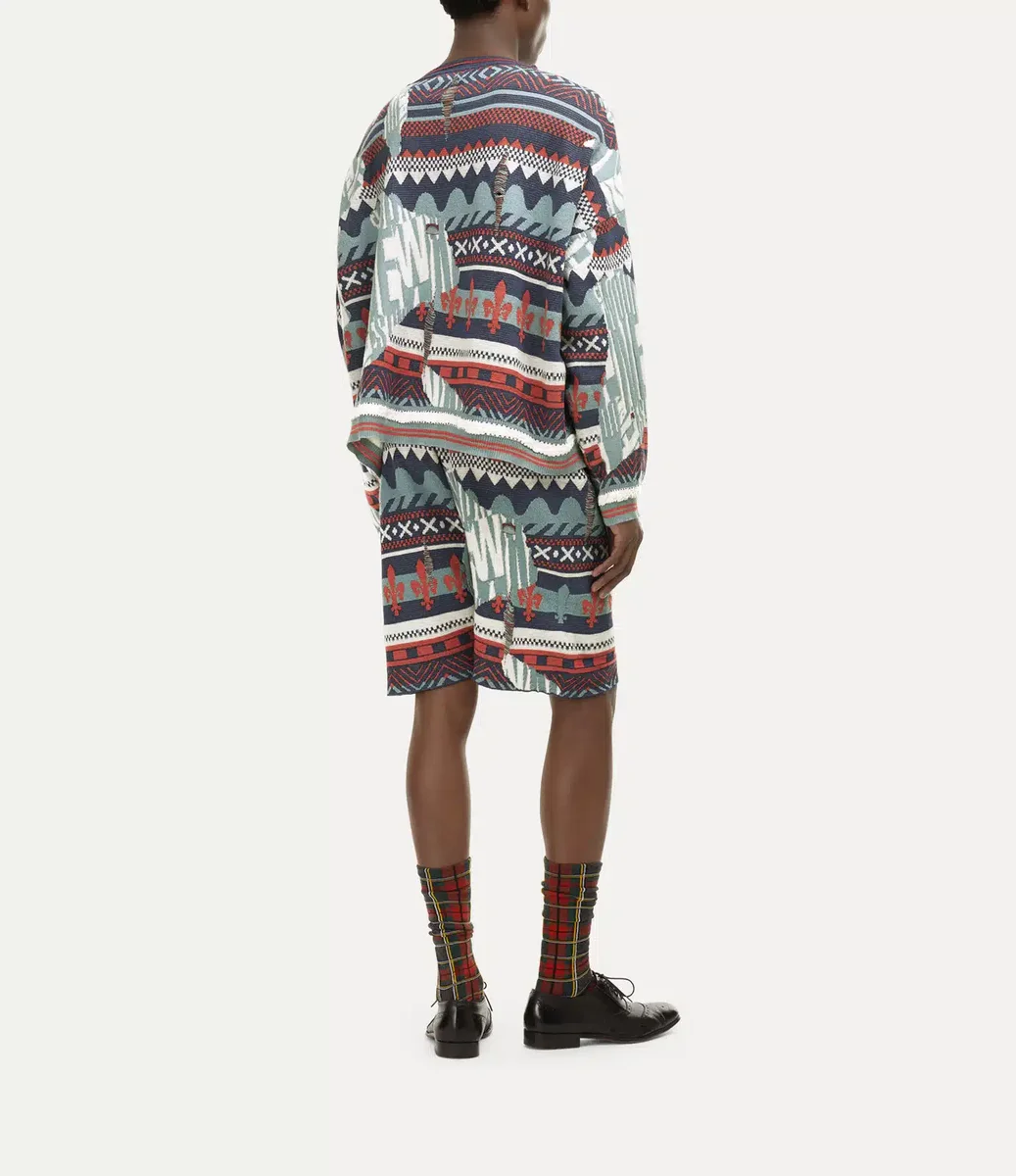 Vivienne Westwood Broken Fair Isle jumper features a Fair Isle jacquard with an oversized fit, complete with distressed details and long, roomy sleeves.