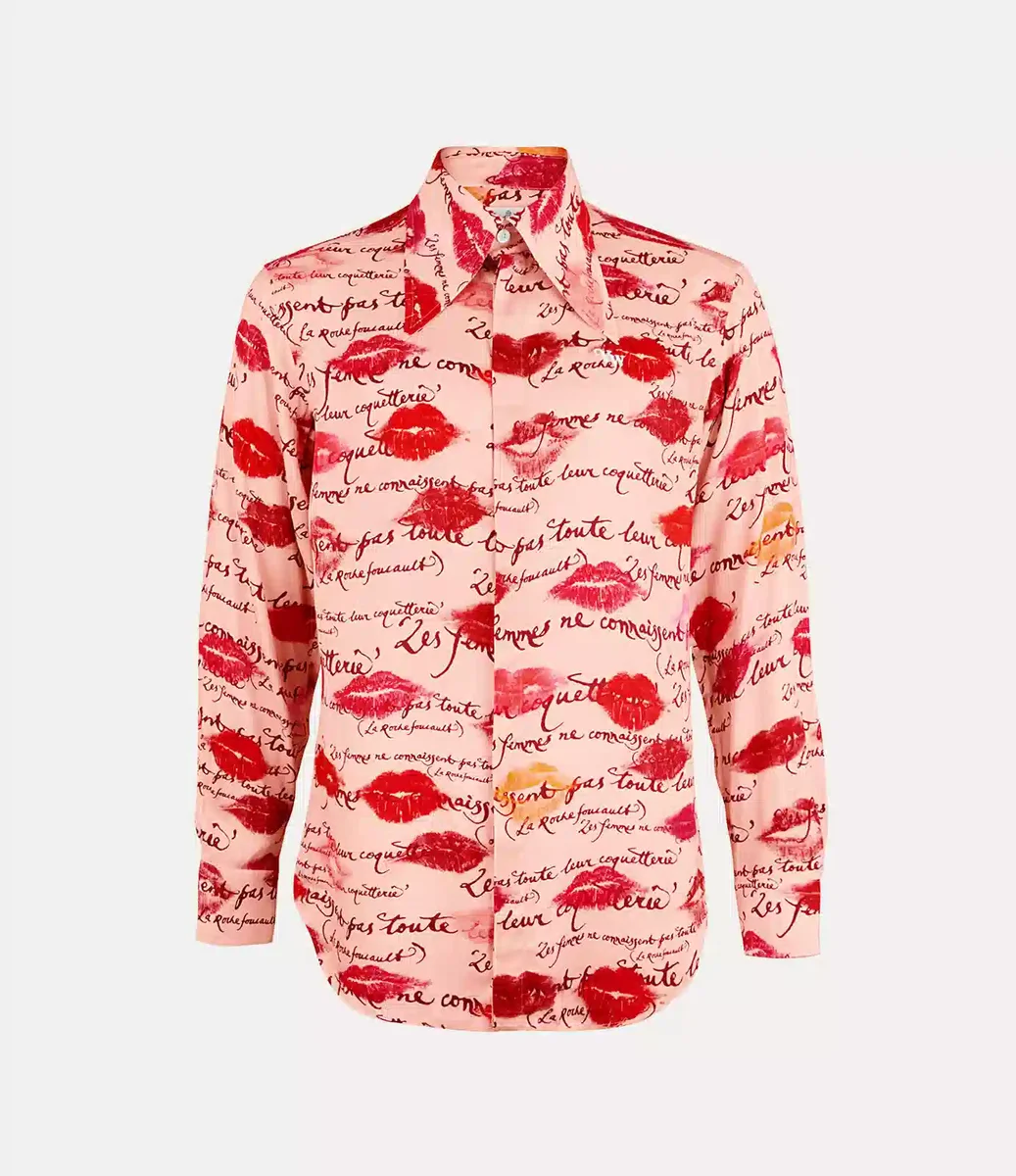 Vivienne Westwood Tuxedo shirt features an exaggerated pointed collar, adorned with the ‘Kisses’ artwork, inspired by our ‘Boudoir’ perfume packaging.