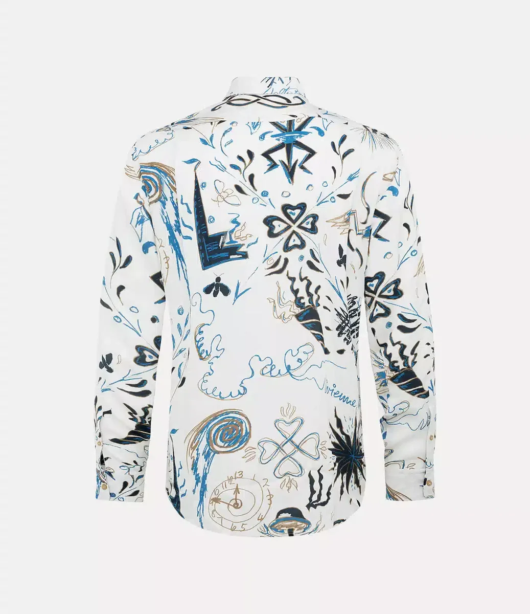 Vivienne Westwood Two Button Krall shirt in soft cotton features Vivienne’s signature two-button collar, complete with an abstract graphic print.