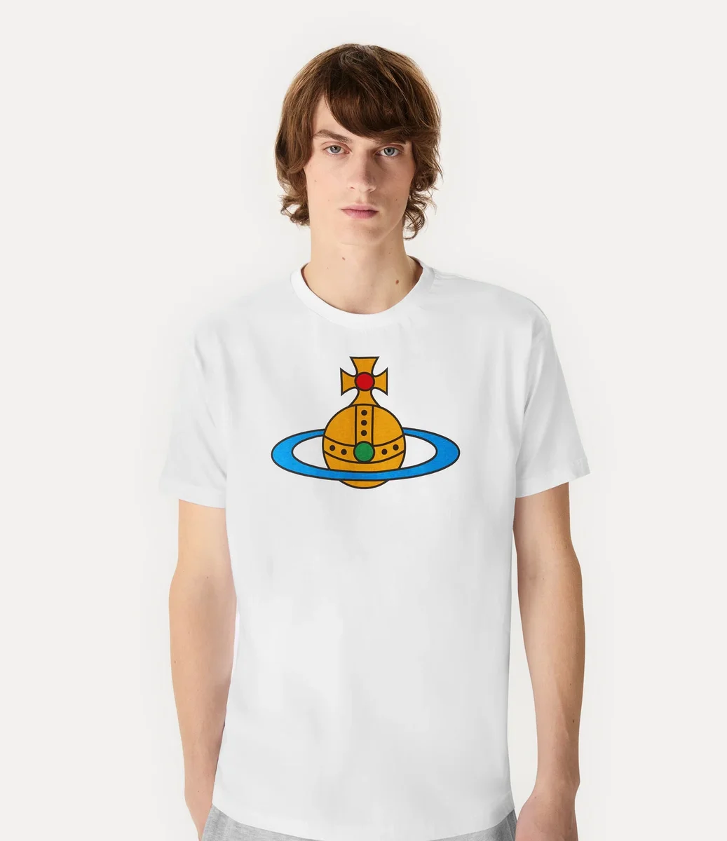 Our Oversized Orb Classic t-shirt is crafted from lightweight cotton, shaped with a crew neckline, short sleeves, and a straight hem. The piece features a printed multi-coloured orb motif across the chest, synonymous with Vivienne’s vision of launching tradition into the future.
