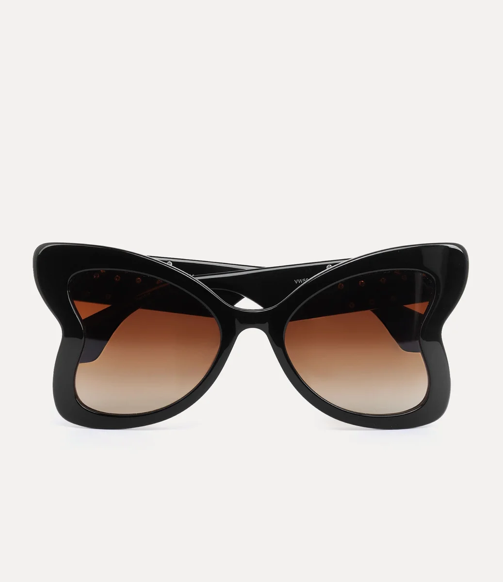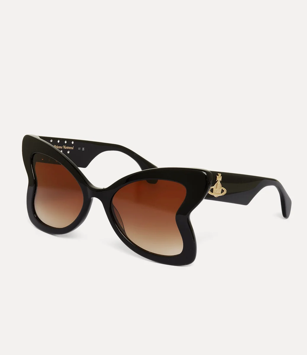 Our hand-made Athalia sunglasses with an oversized, butterfly-inspired frame feature a crystal-embellished inner and graduated lenses. Inspired by the beauty of Georgian jewellery lockets, the temples are set with a gold-tone orb.