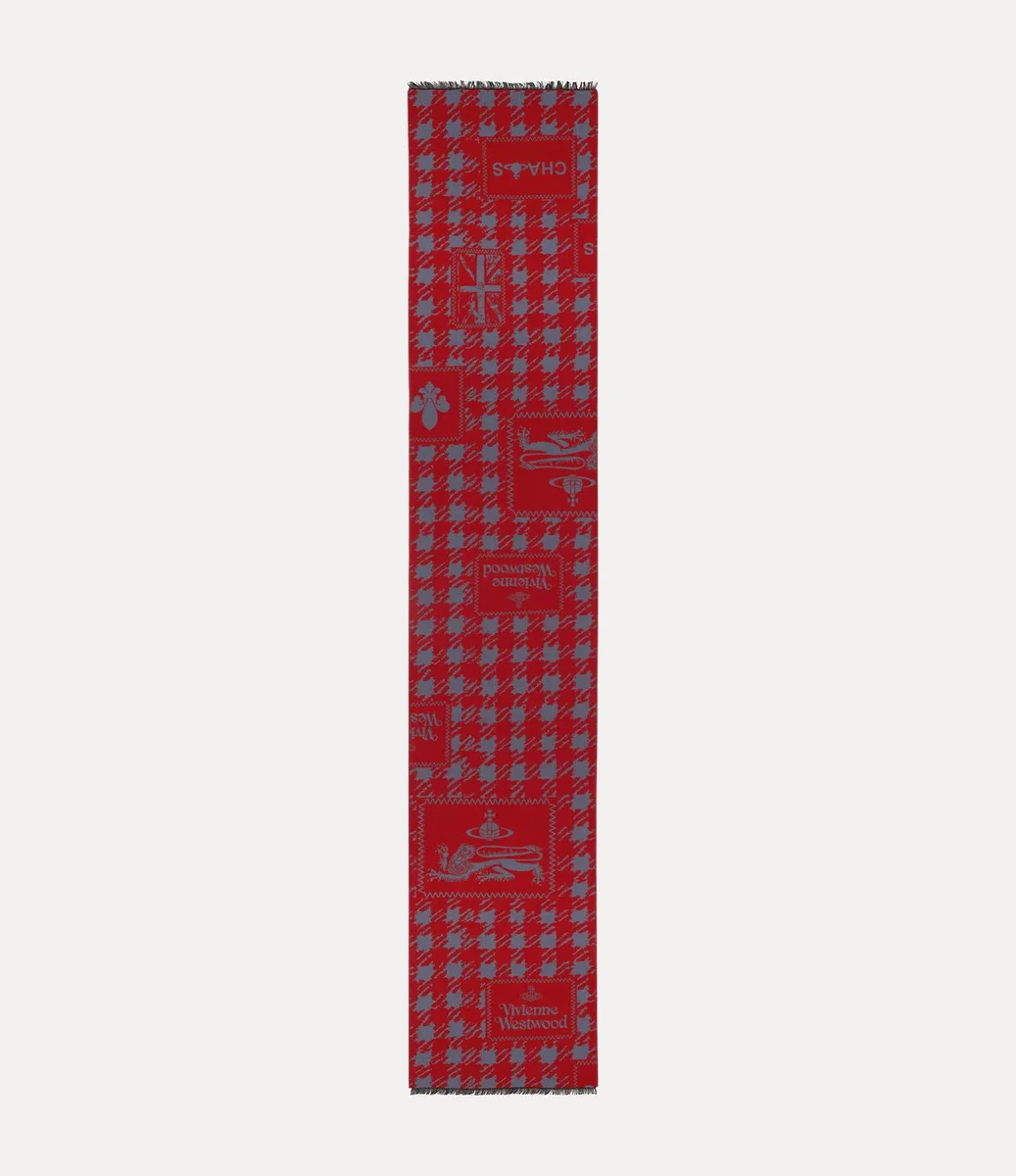 The Dogtooth Badge scarf is woven with a series of archival motifs set against a traditional dogtooth background. Complete with a jacquard Vivienne Westwood logo, the design embodies the house’s vision of propelling tradition into the future.