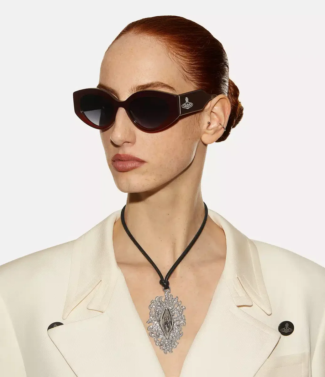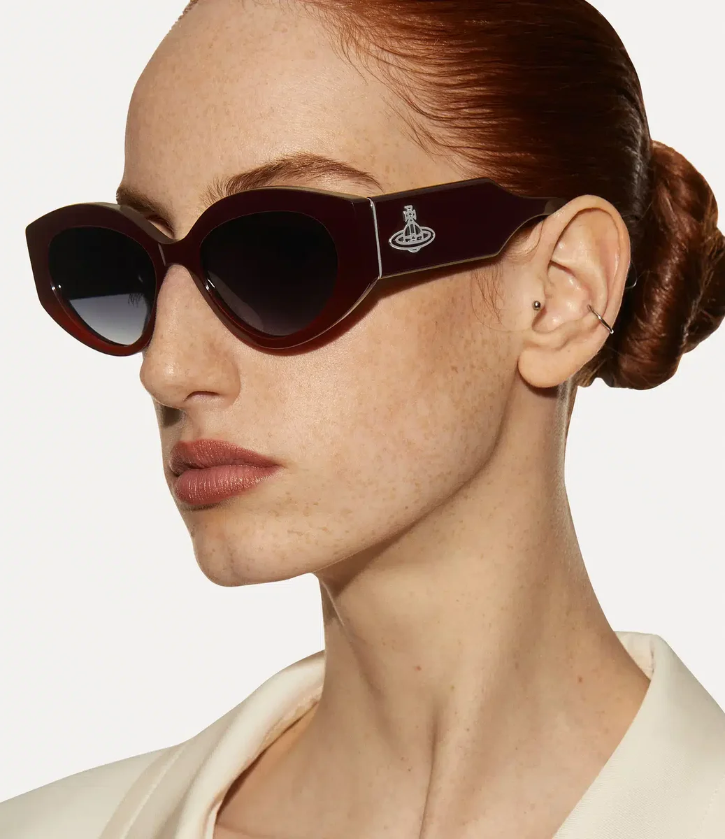 The Jackie sunglasses feature a timeless silhouette, inspired by vintage photography and 1980s underground icons. Featuring gradient UV-protective lenses, the style is finished with a two-dimensional metal orb at the temples, embodying Vivienne’s vision of launching tradition into the future.