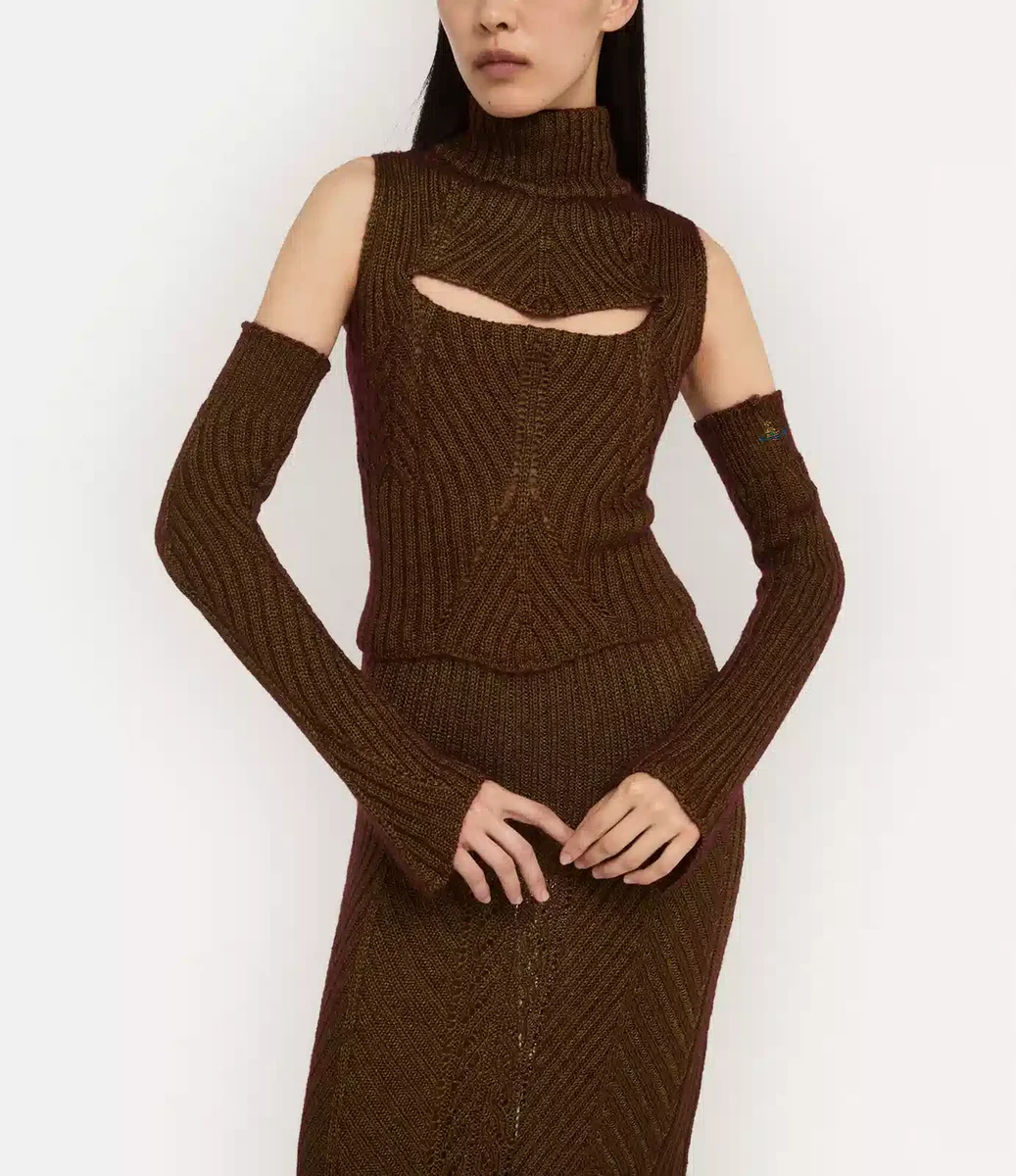 Our Mary arm warmers are crafted from a silk-mohair blend and features a unique mix of herringbone and rib-knit stitches. The design features flared cuffs, naturally shaped by the knit structure and finished with rib detailing throughout the silhouette.