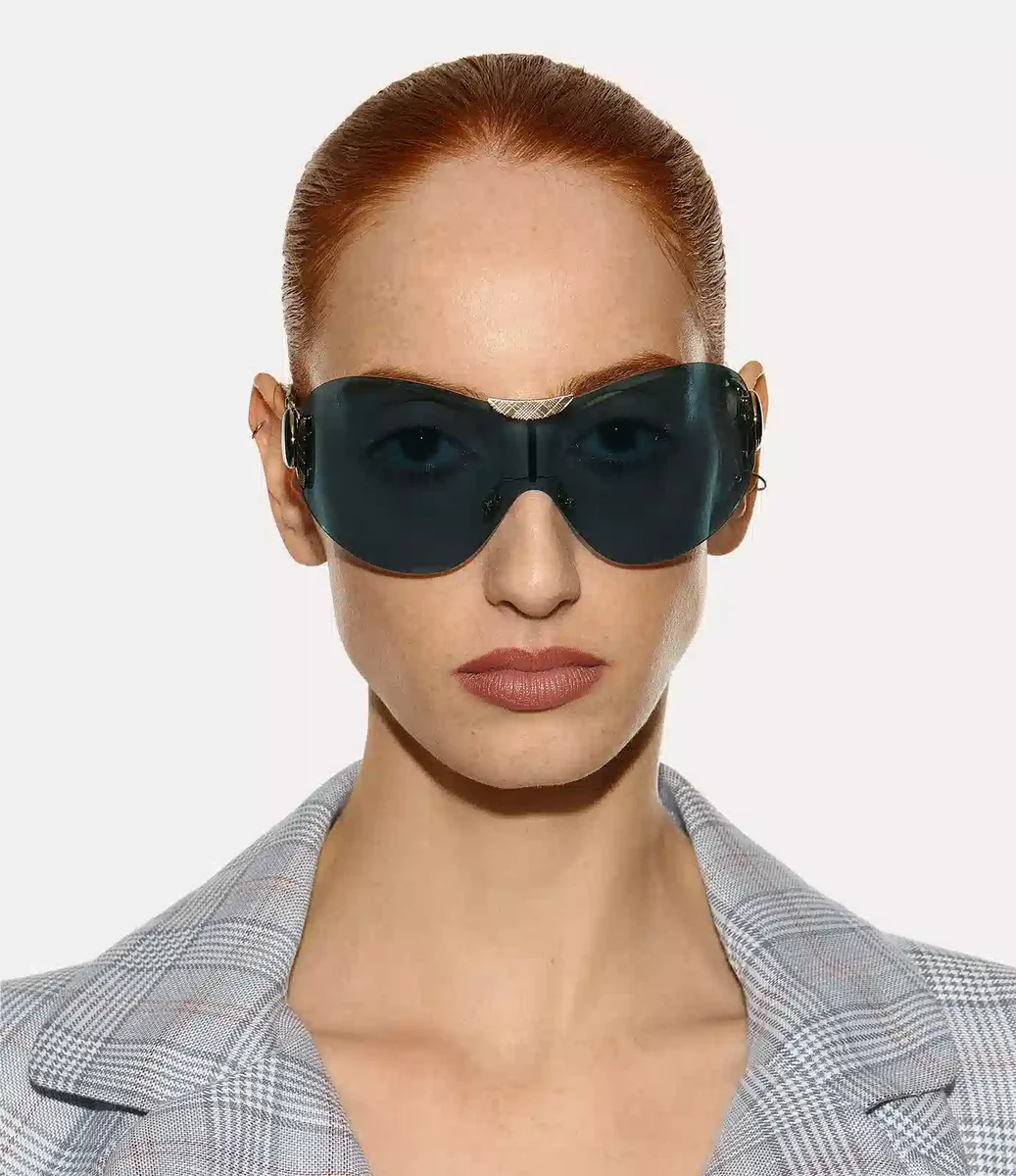 Named after the late legendary singer Tina Turner, the Tina sunglasses feature an exaggerated vintage-inspired silhouette, reminiscent of the glamorous Studio 54 icons. Complete with dark blue lenses that provide UV protection, the piece offers a hand-painted enamel orb at each temple, drawing inspiration from Victorian keepsake jewellery.