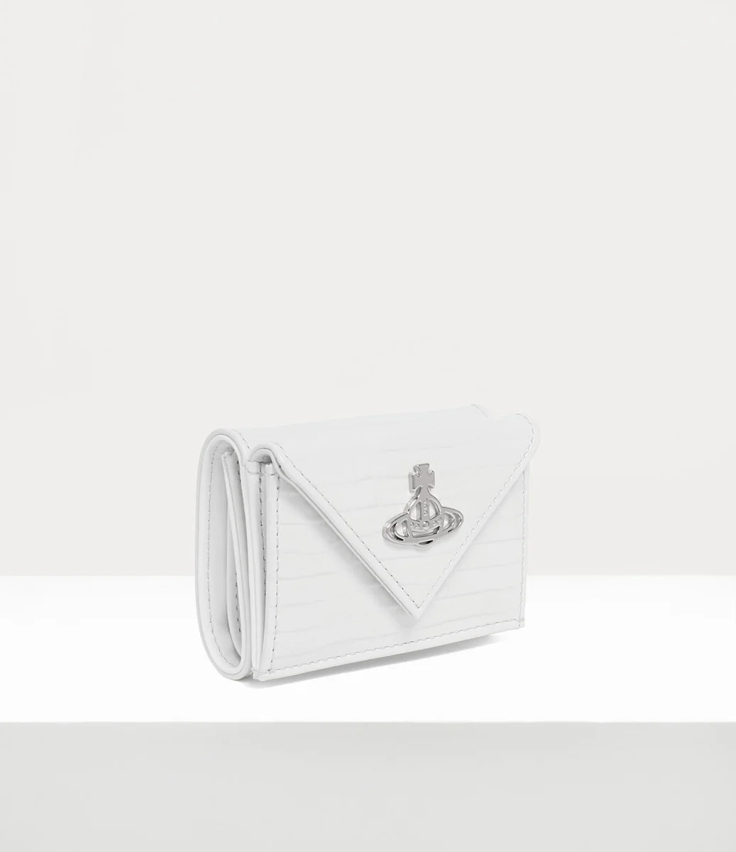Our Envelope billfold is reimagined in this season’s mini croc-effect embossed leather. Finished with the house’s signature metal ‘Line orb’ motif on the press-stud fastening, the piece embodies Vivienne’s vision of propelling tradition into the future.