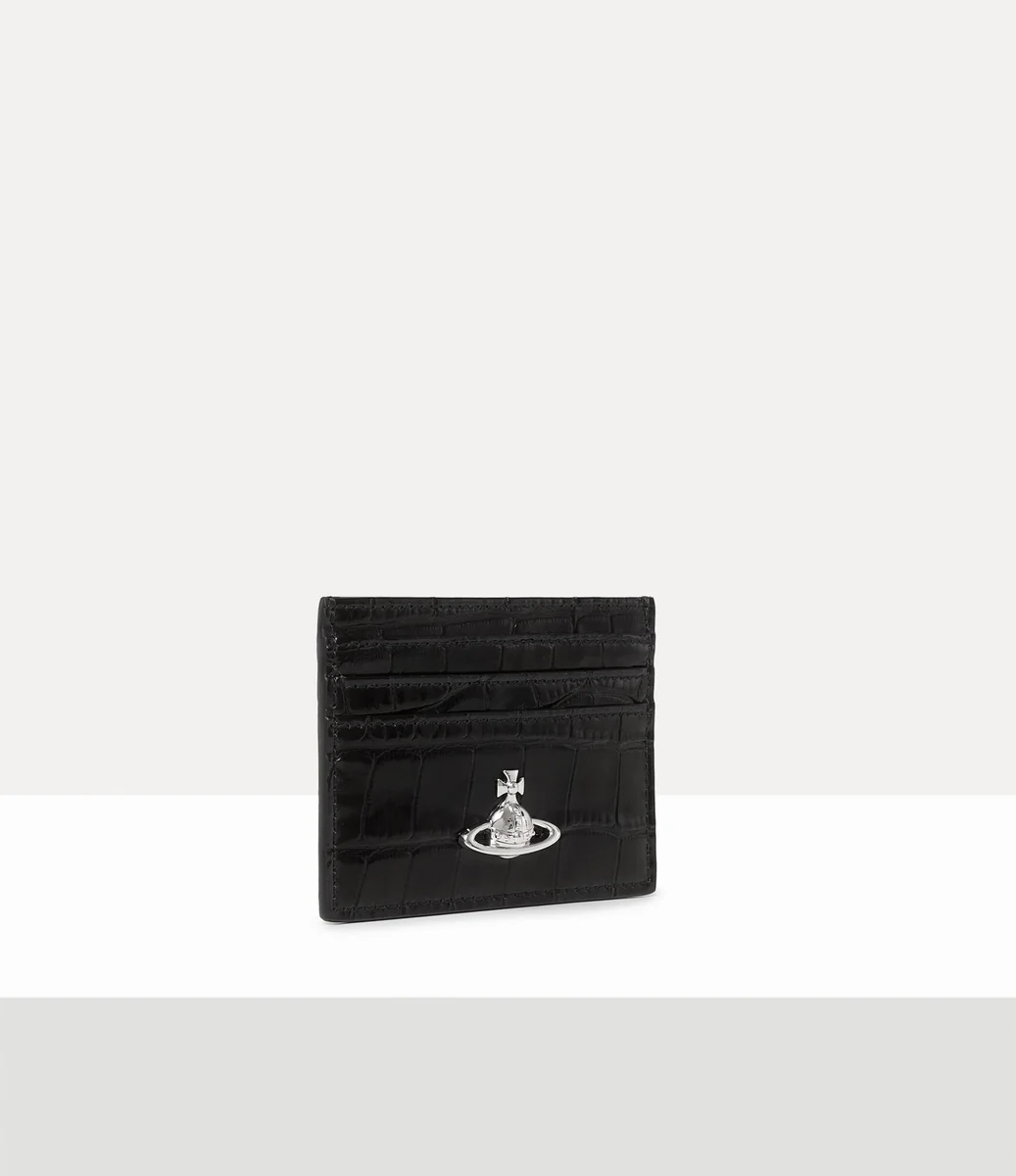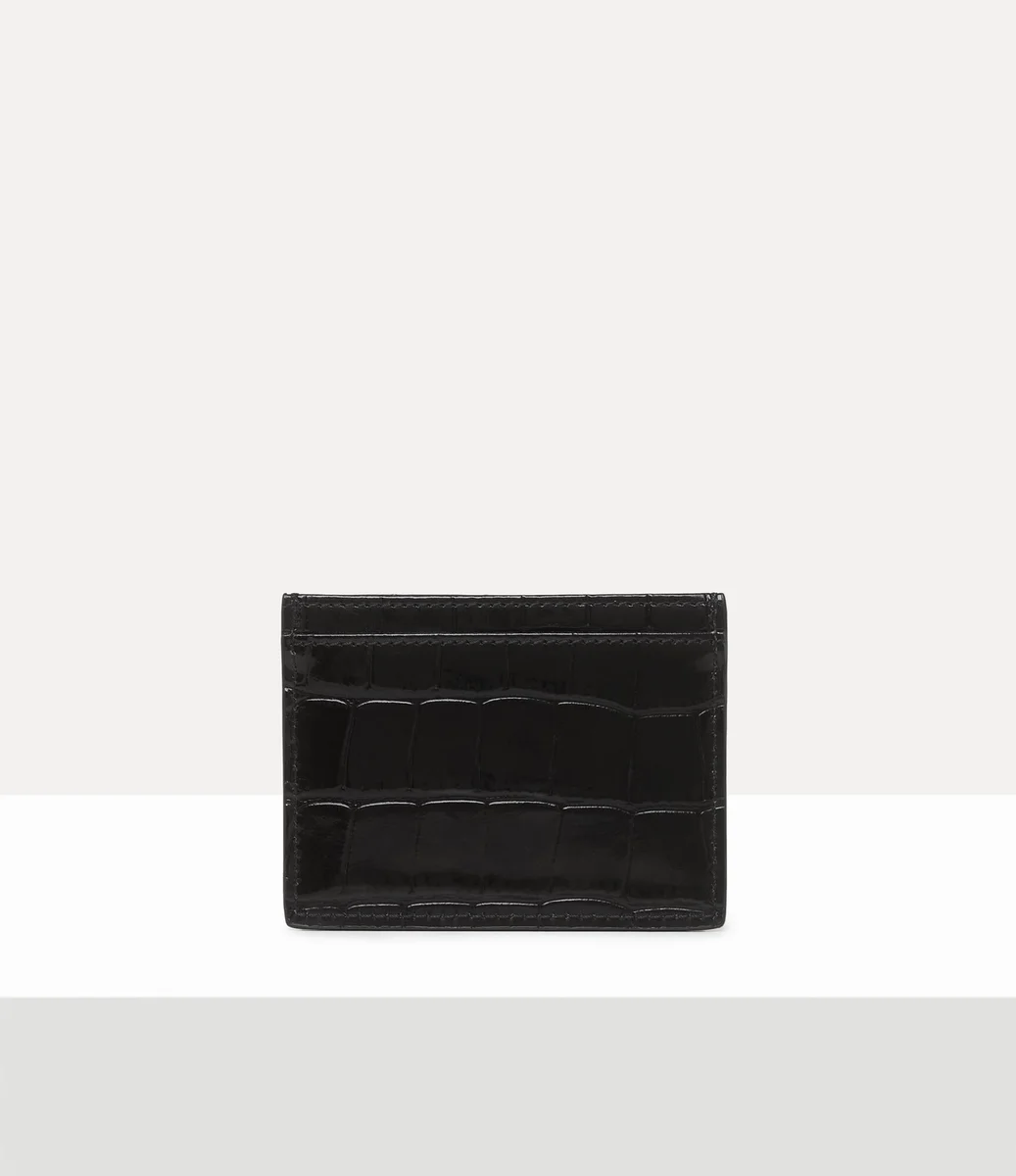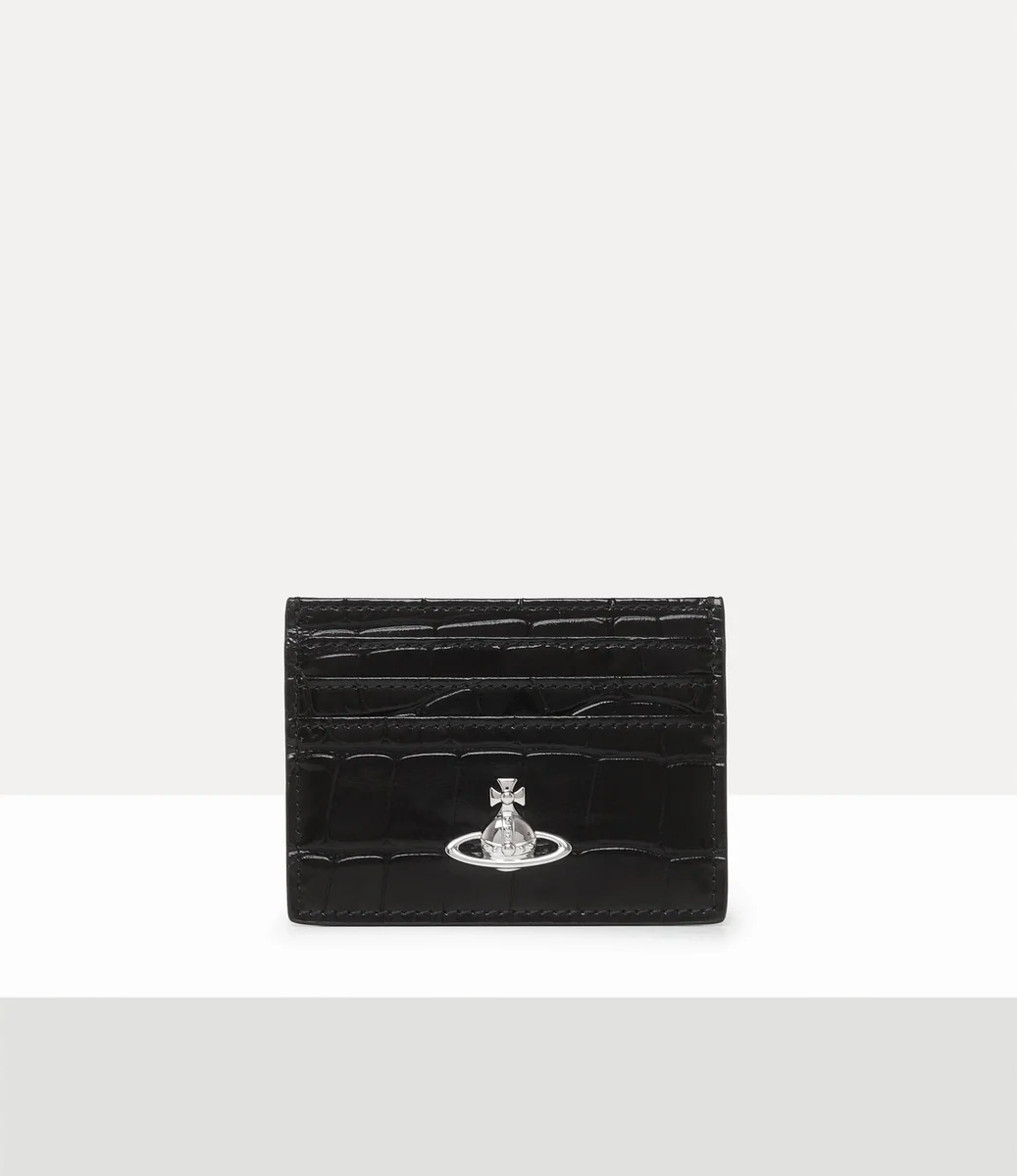 Our signature Flat Card holder is crafted from shiny leather with a croc-effect embossed finish. The slim profile is adorned with the silver-tone orb motif on the front, reflecting the house’s ethos of connecting the past to the future.