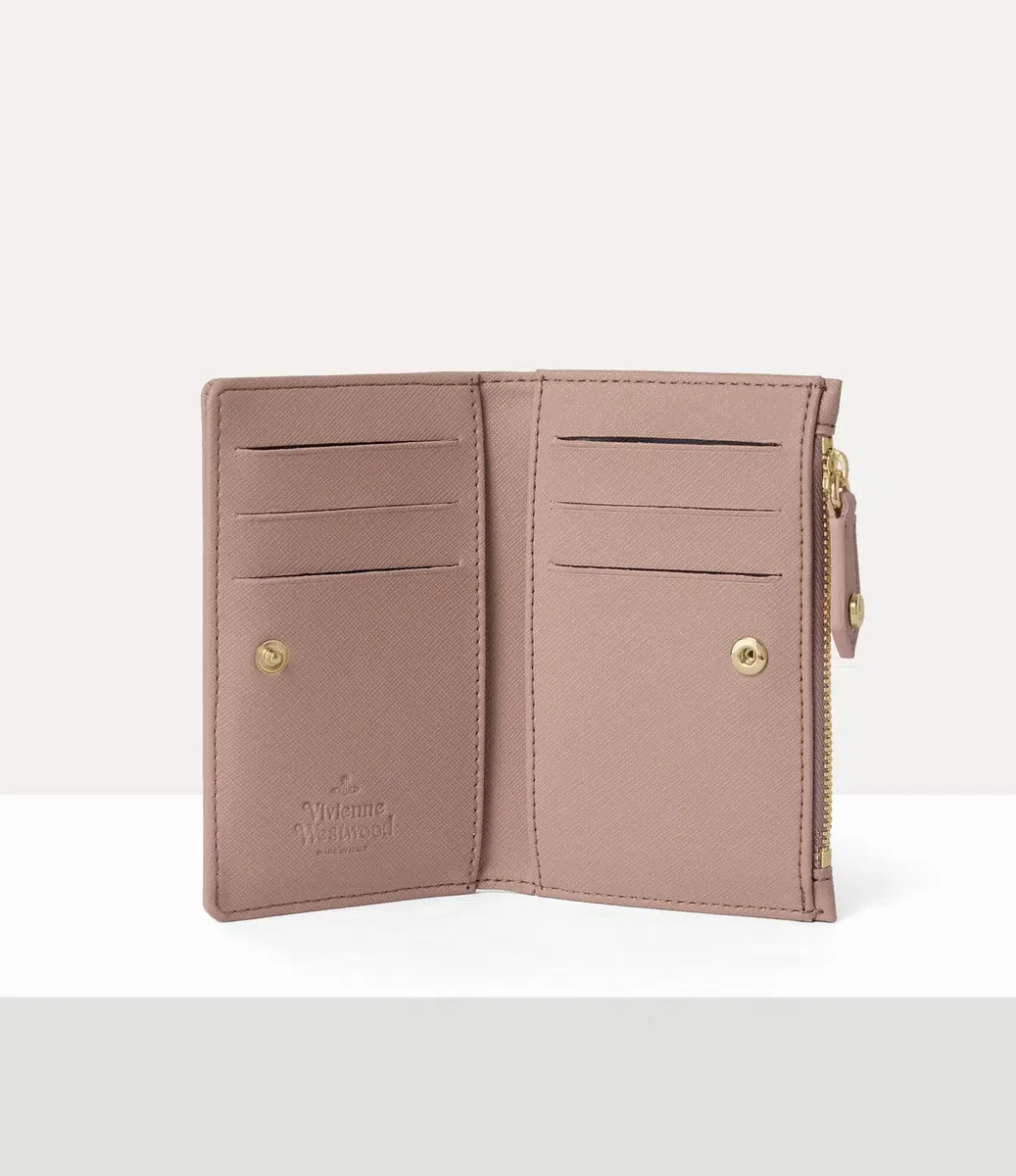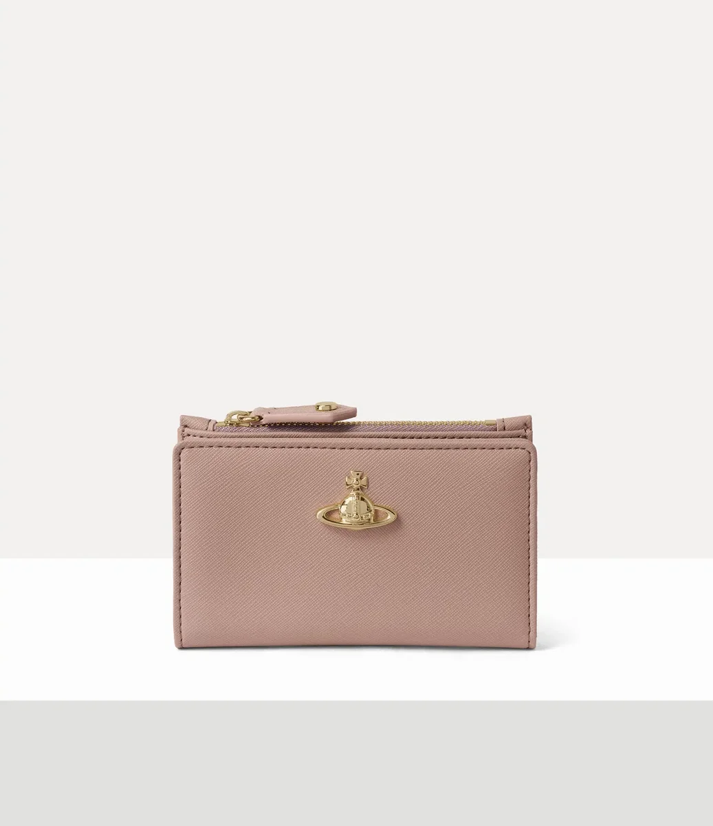 Vivienne Westwood Slim Flap card holder features a saffiano-embossed PU finish and receives our signature orb motif on the front panel, with a top-zip closure.