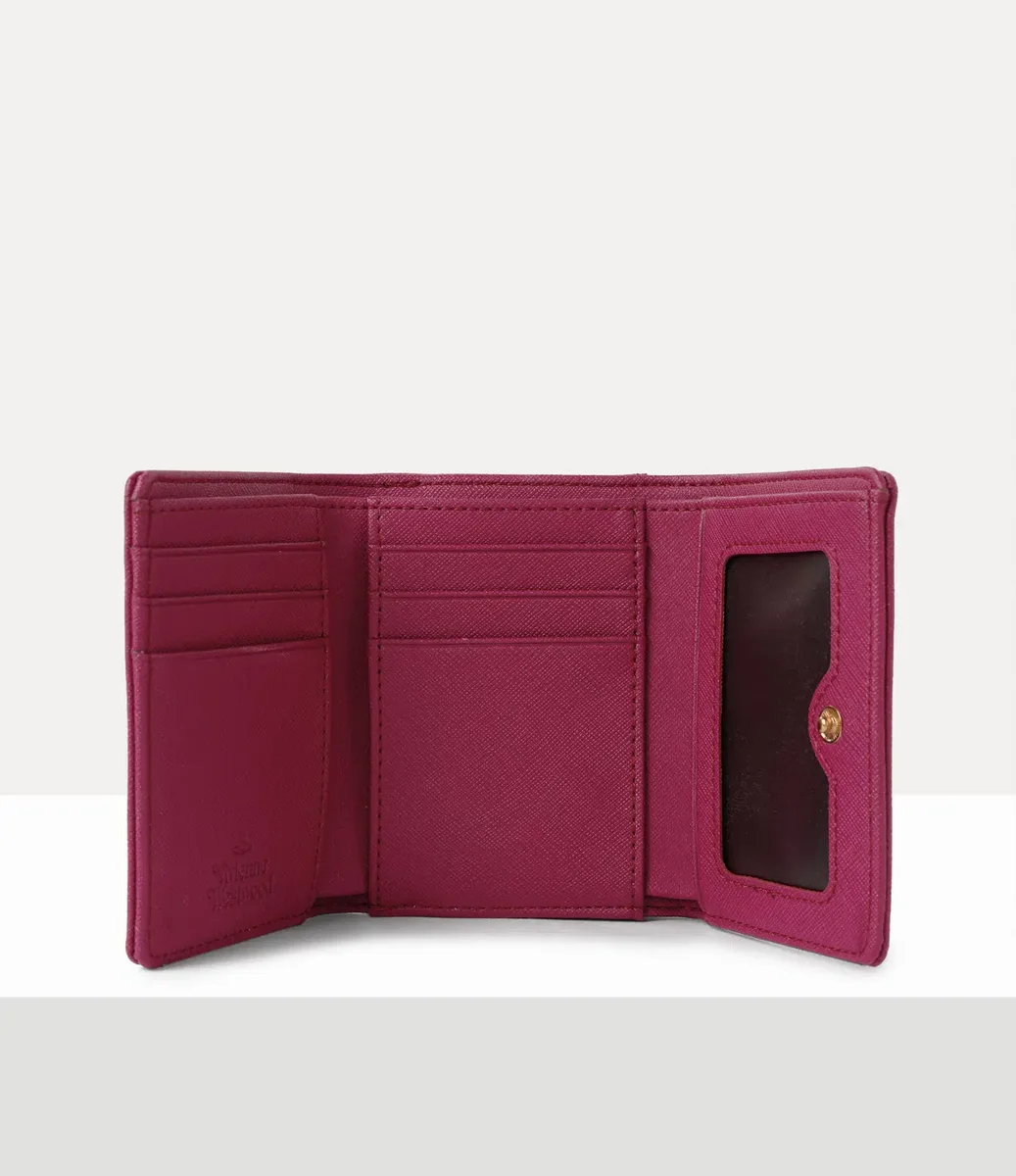 Vivienne Westwood Small Frame wallet in PU leather features a tri-fold leather silhouette, complete with a polished orb at the front.