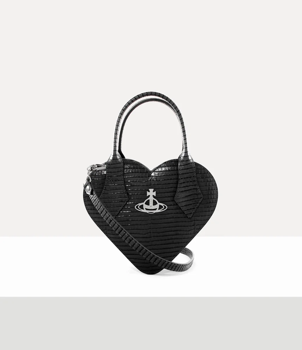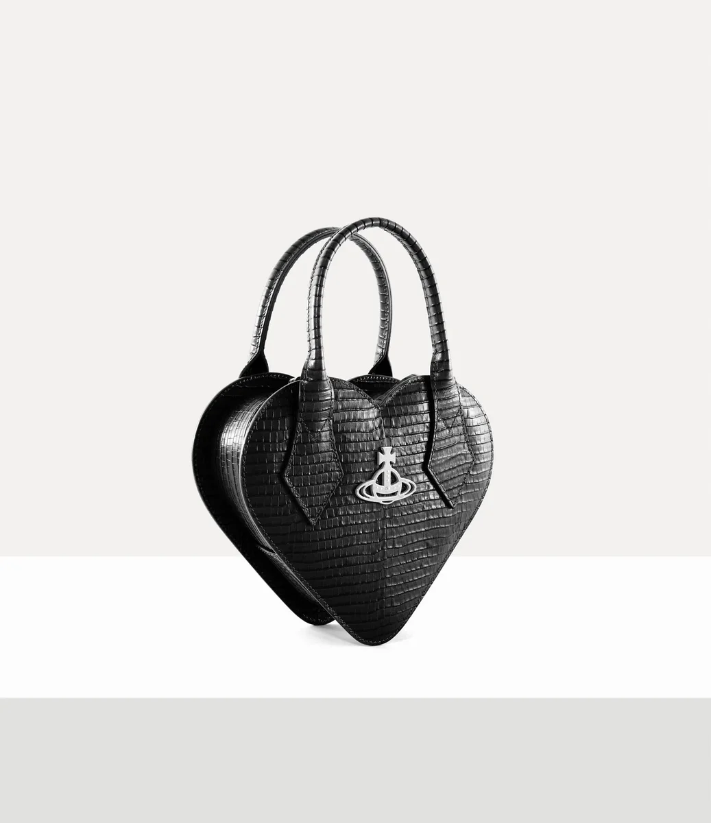 Our Josephine Heart Crossbody bag reimagines the house’s signature heart-shaped motif, recalling Vivienne’s affection for humanity and the planet. Crafted from croc-effect embossed leather, the bag features a sleek single-compartment design with a zip-around fastening, adorned with our classic ‘Line Orb’ motif.