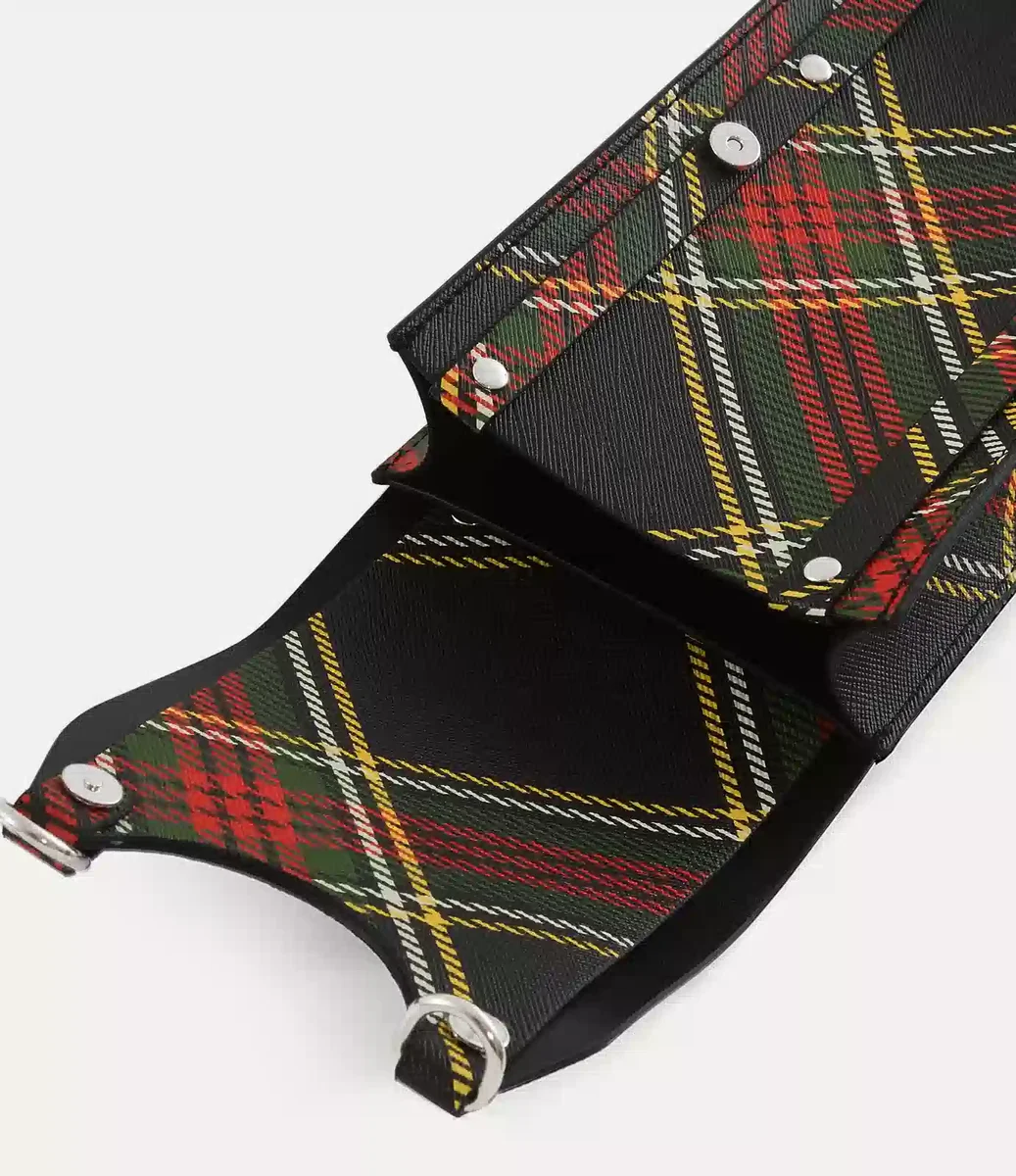 Vivienne Westwood Max Mini Crossbody bag in tartan printed PU leather features silver-tone hardware across the design and the orb motif on the front flap.