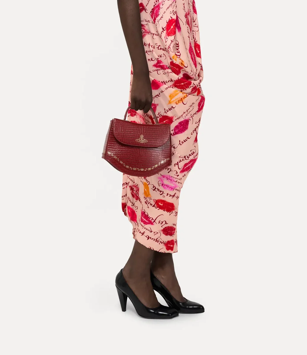 Vivienne Westwood Chloe Top Handle bag is crafted from soft calf leather and features this season’s ‘Mini’ croc-effect embossed motif.