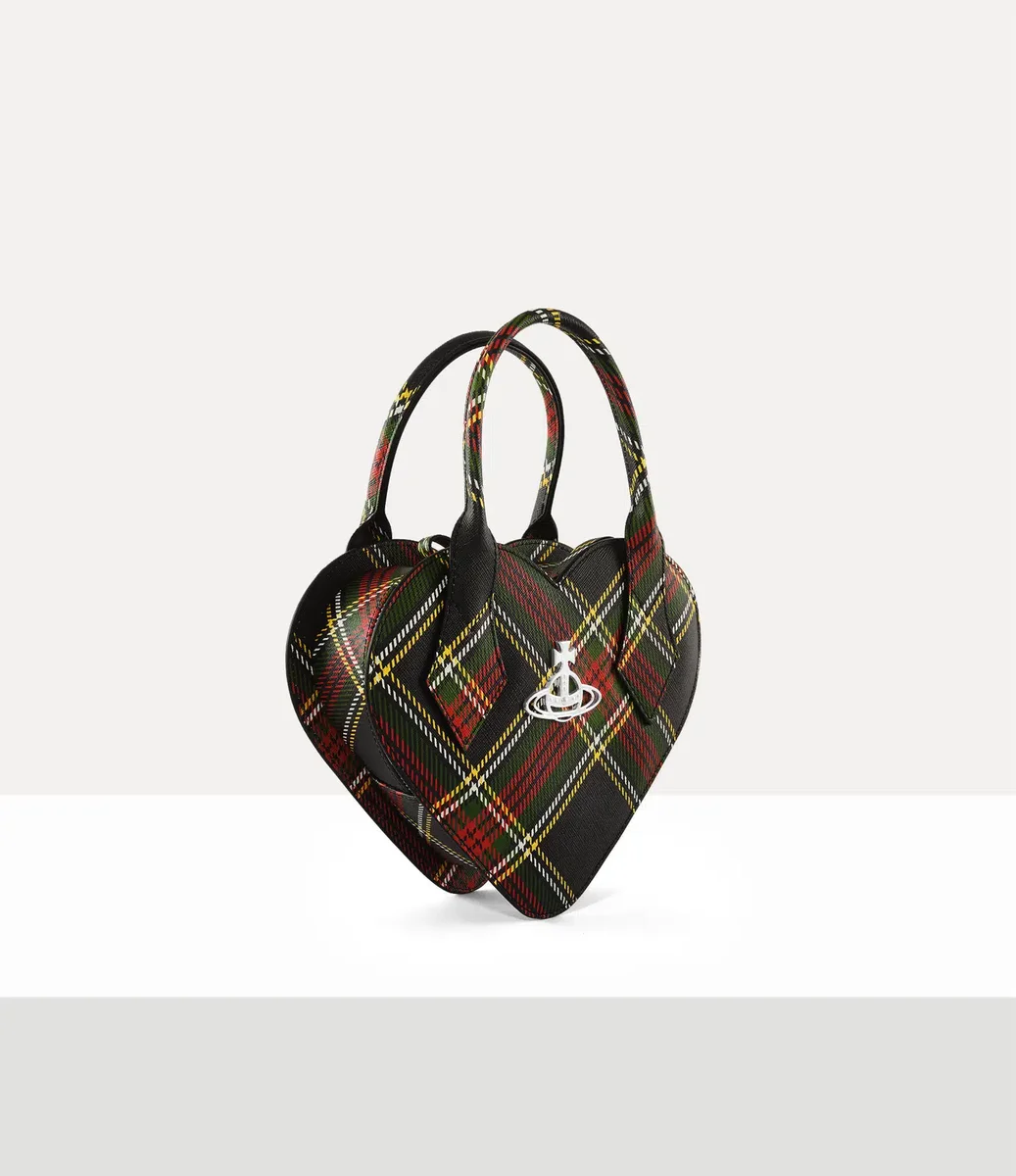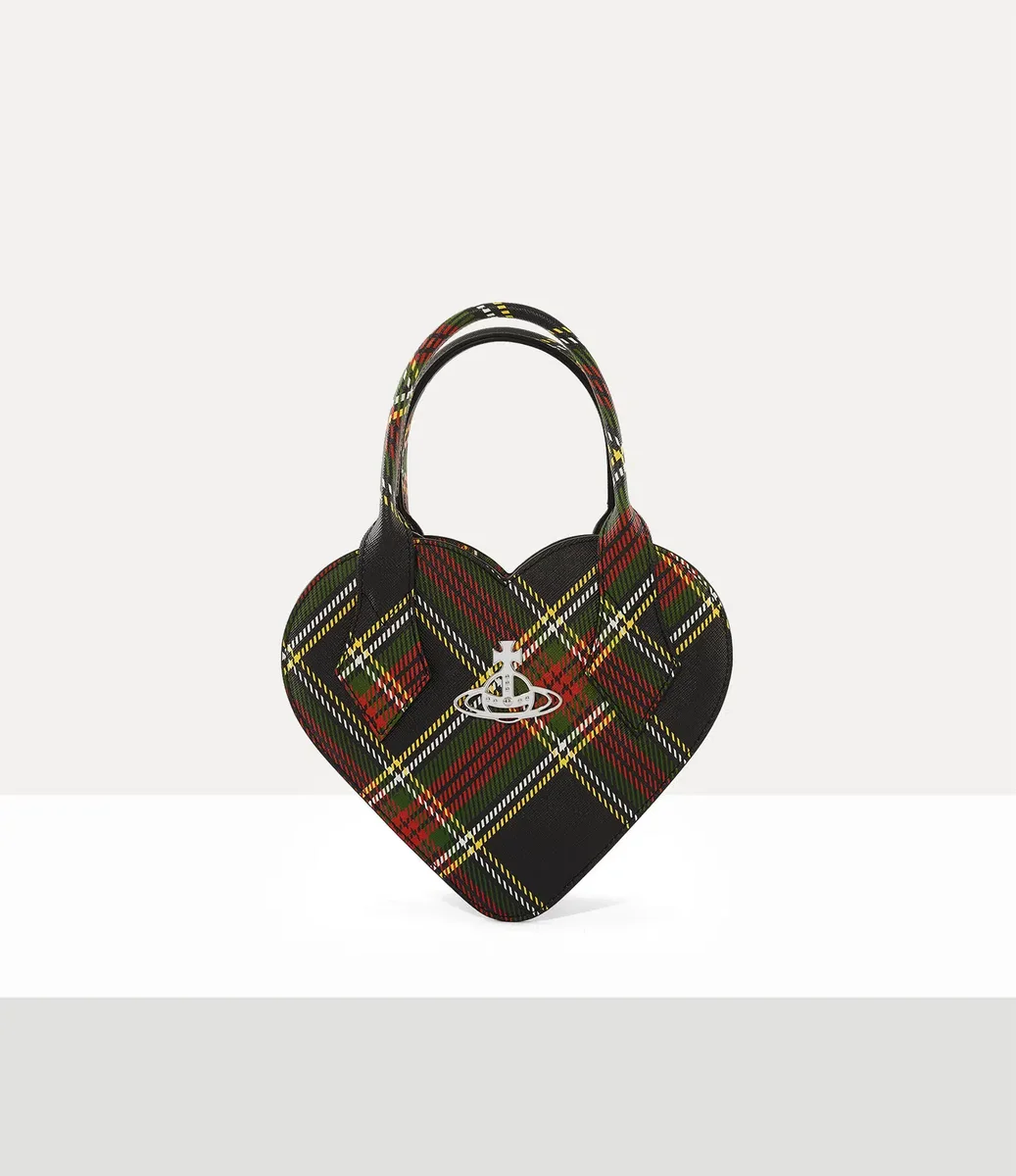 Vivienne Westwood Josephine Heart crossbody reimagines the house’s signature heart silhouette in this season’s PU leather, printed with the bold Chelsea tartan pattern.