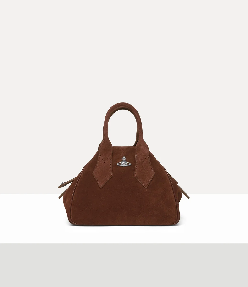 Vivienne Westwood Yasmine Small bag is crafted from supple suede leather, adorned with a lustrous bas relief orb motif at the front.