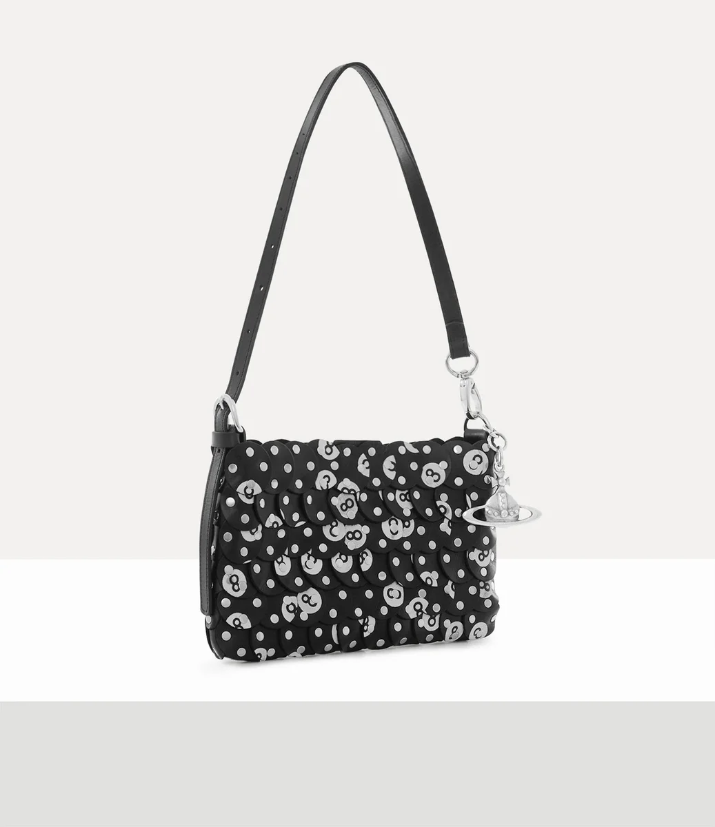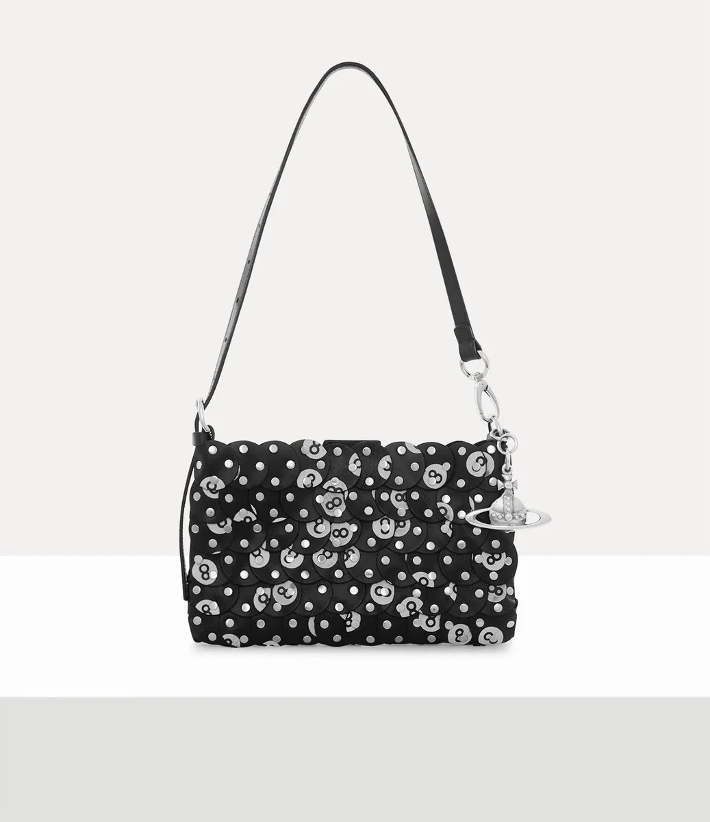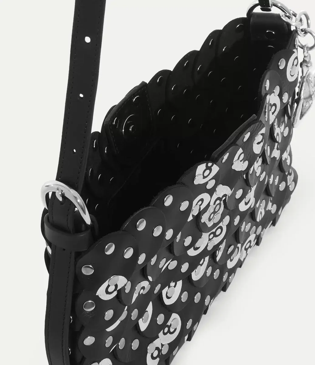 The Lola shoulder bag, created in partnership with the Ethical Fashion Initiative for our Made in Kenya collection, draws inspiration from vintage bingo and billiard prints. The silhouette is crafted from hand-cut leather circles, adorned with hand-applied silver-tone ‘8 Ball’ studs.