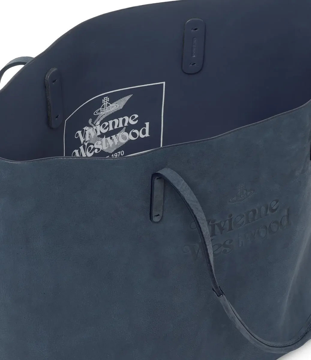 Vivienne Westwood Studio shopper is crafted from a soft denim blue nubuck leather and features an embossed front panel.