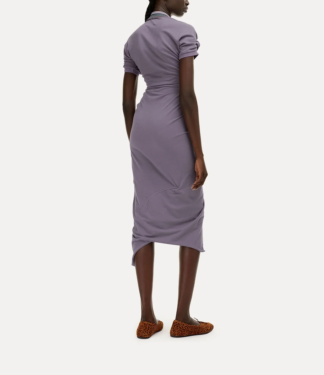 Our archive Pulling dress has been revisited this season, offered in a soft cotton finish. The piece employs Vivienne’s original experimental ‘Pulling’ pattern cutting system – where the garment is draped and pulled to create form, volume, and structure.