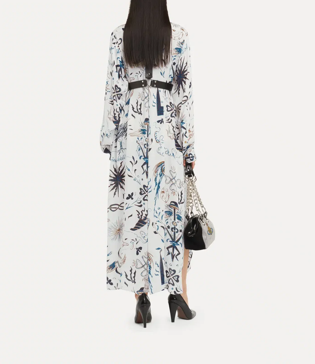 Inspired by ‘The Laughing Cavalier’ by Frans Hals, currently housed in The Wallace Collection, the VW shirt dress is printed with an abstract graphic design incorporating the house’s signature iconography. Featuring motifs of a spiral clock and starburst details, the print first appeared in the Gold Label Spring–Summer 2010 collection, ‘Get A Life’.