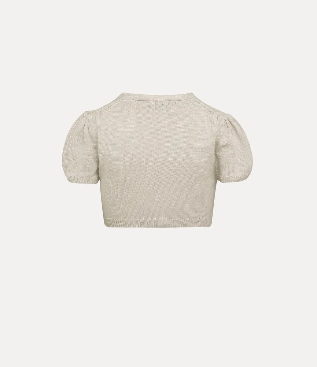 Crafted from a soft cotton-cashmere blend, our Ida cardigan is finished with the house’s signature amber-toned button fastenings. Framed by a deep V-neckline, the design features gently puffed sleeves and ribbed trims, falling into a delicately cropped silhouette.