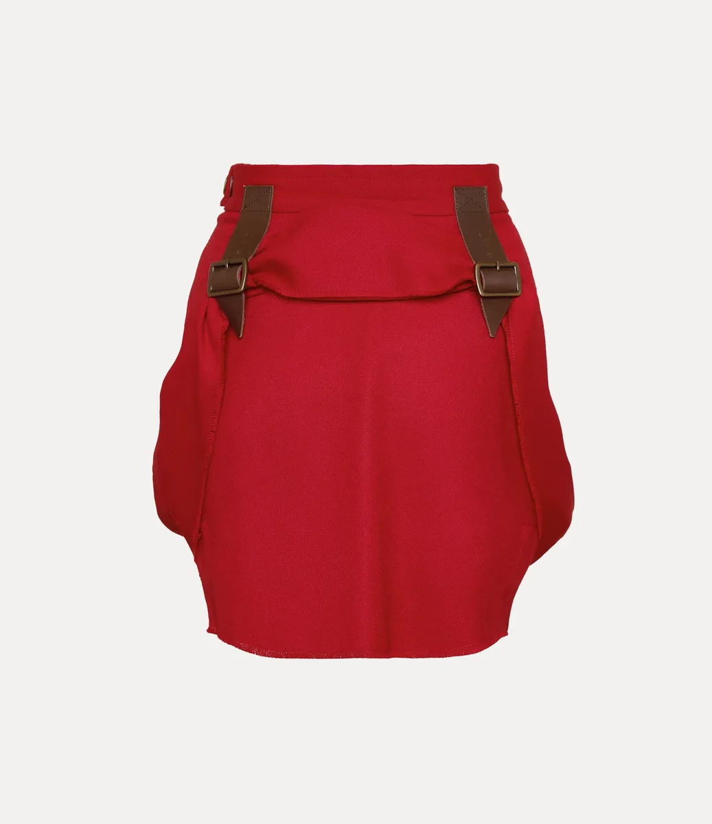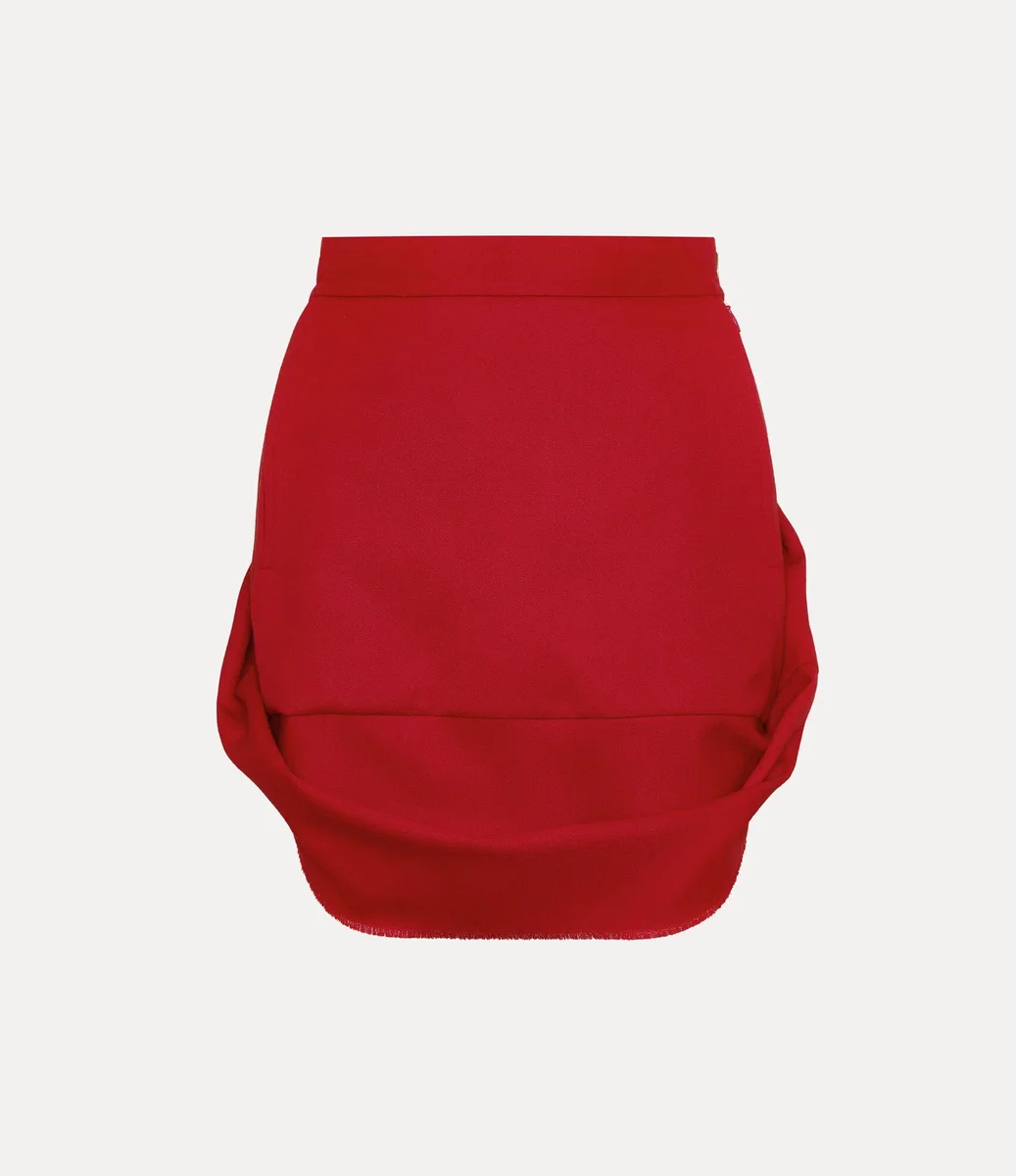 Our Mini Frame skirt is crafted from a soft woollen blend, shaped with a high-rise waistband that falls into a voluminous double-layered silhouette. Defined by its delicately curved front draping and raw-cut hemline, the design remains faithful to Vivienne’s punk-inspired aesthetic.