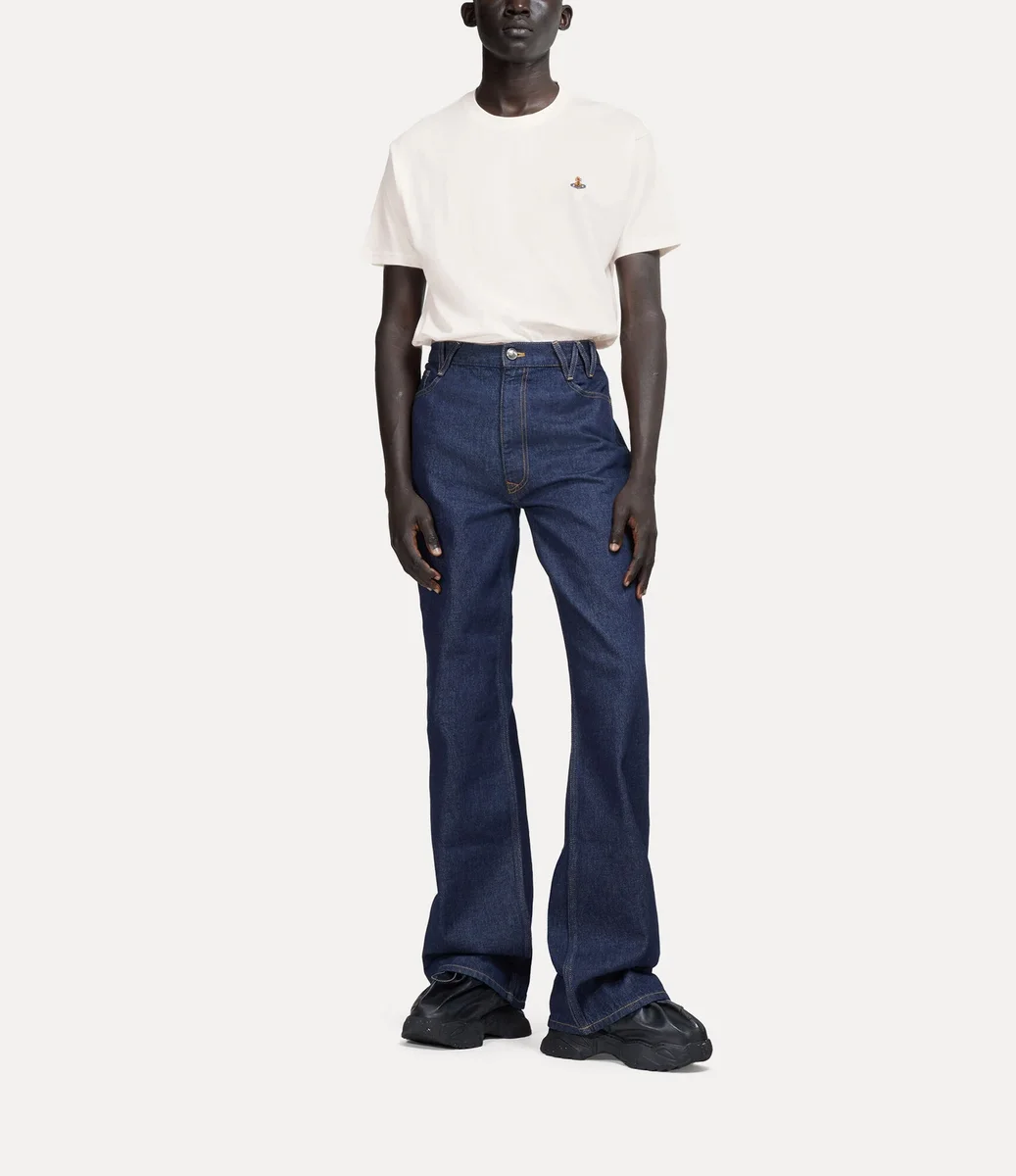 Our Classic t-shirt features a soft cotton silhouette, complete with short sleeves and a round neckline. The piece receives a multi-coloured orb embroidery on the left-hand side of the chest – synonymous with Vivienne’s vision of taking tradition into the future.