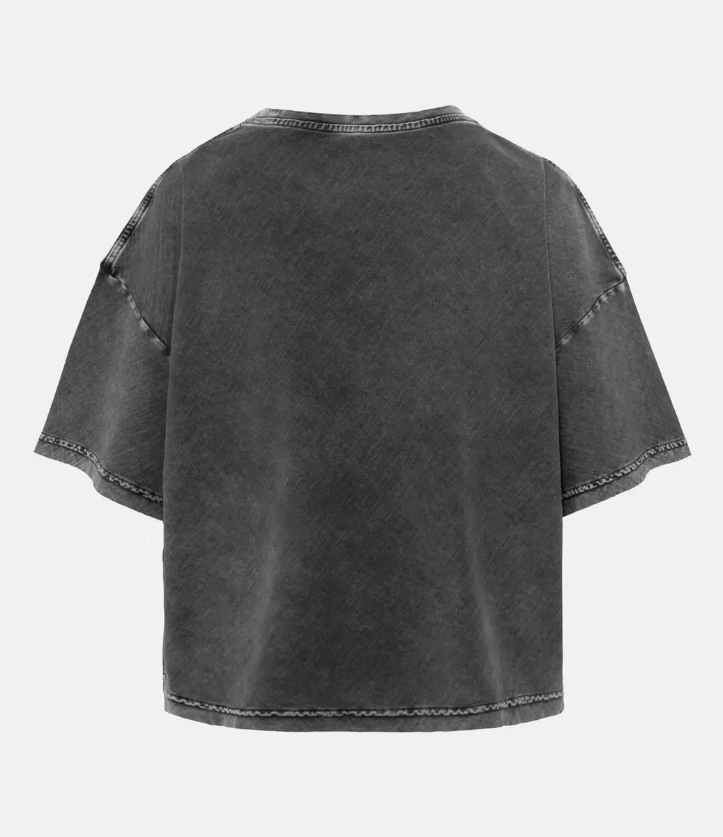 The Fawn Box T-shirt is crafted from organic cotton with a faded charcoal wash for a distressed look. Featuring a crew neckline and straight hem, the piece is printed with the house’s fawn motif from the Autumn–Winter 2002 ‘Anglophilia’ collection, alongside the ‘Make History’ slogan.