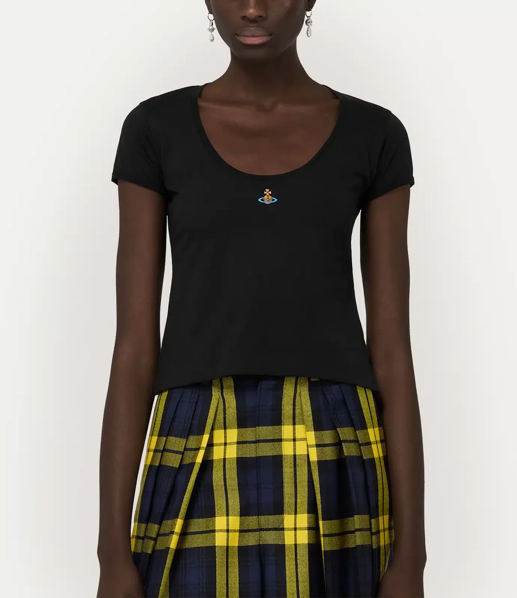 Vivienne Westwood Micro Lollo t-shirt features a cropped cotton silhouette, with short sleeves and a low scoop neckline, complete with our orb embroidery.