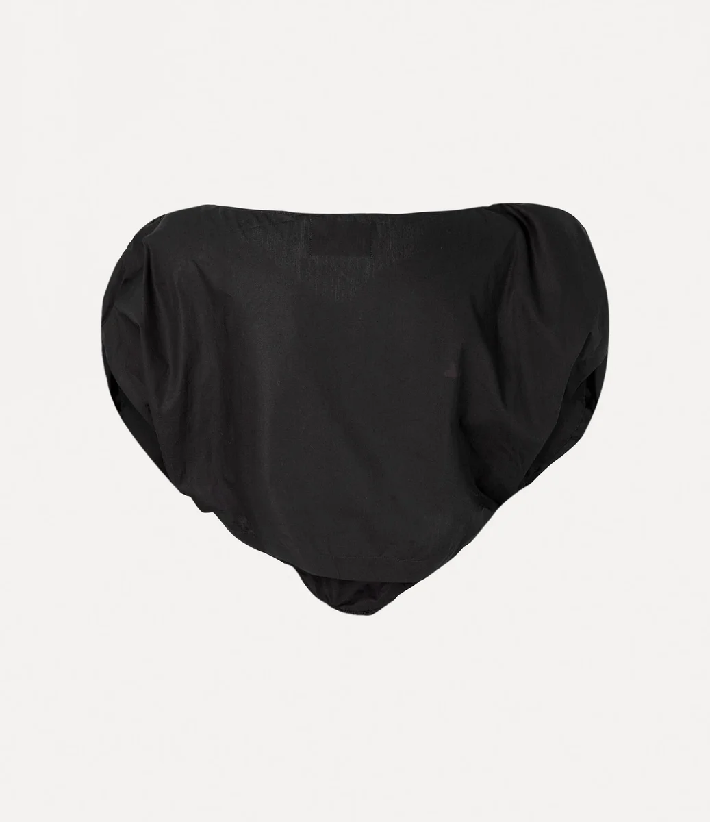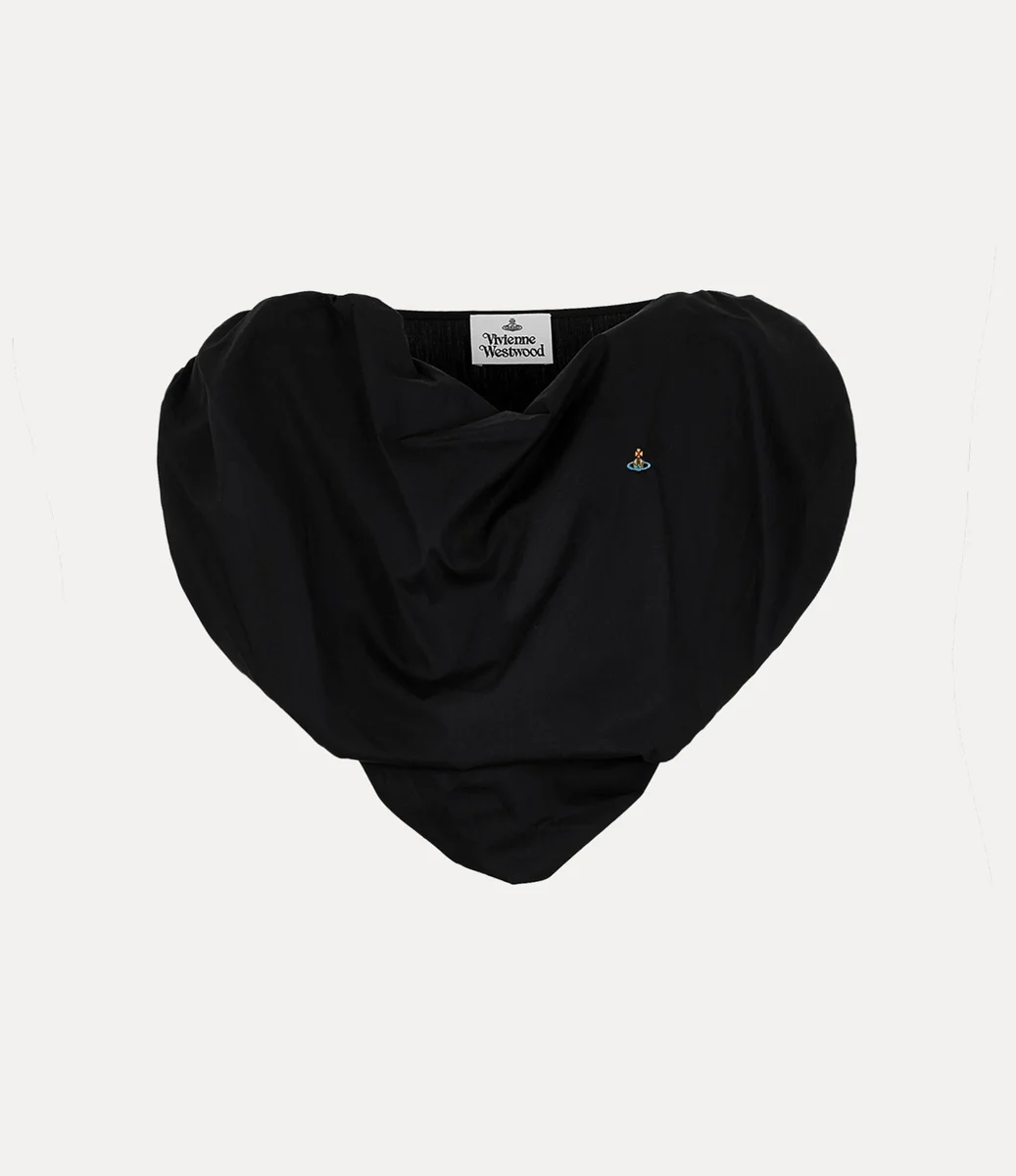 The asymmetric heart shape has become a signature style of the house, having appeared in many collections throughout our history. This season’s Heart top revives the silhouette, which Vivienne used to evoke an affection for both humanity and the planet, complete with an embroidered orb on the left-hand side of the design.