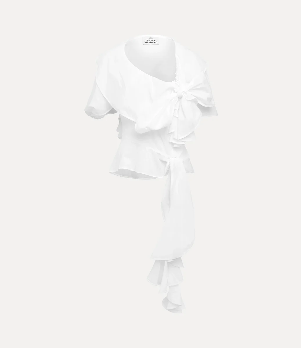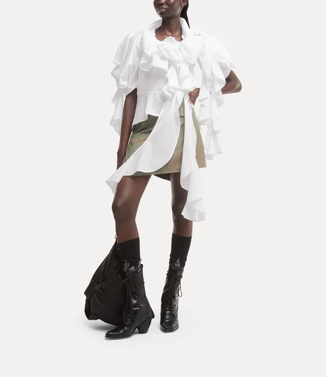 Vivienne Westwood Lola Ruffle top in cotton drapes across the body with deliberate asymmetry, creating a voluminous silhouette.
