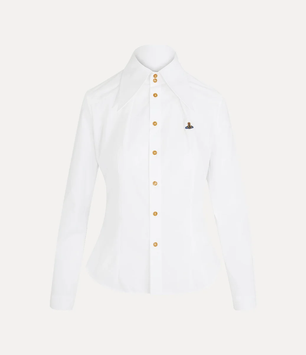 Vivienne Westwood W Violin shirt features an exaggerated collar with pointed edges, complete with our signature three-button closure and embroidered orb motif. .