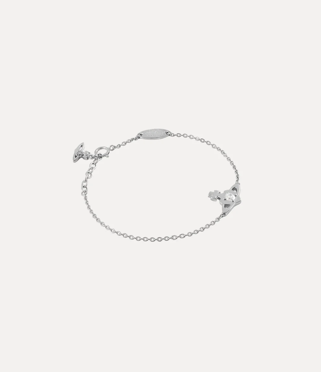 Our Noella bracelet is crafted from recycled silver and adorned with this season’s heart orb motif, recalling Vivienne’s affection for humanity and the planet. Embedded with a white crystal in the centre of the design, the style offers a secure lobster-clasp closure.