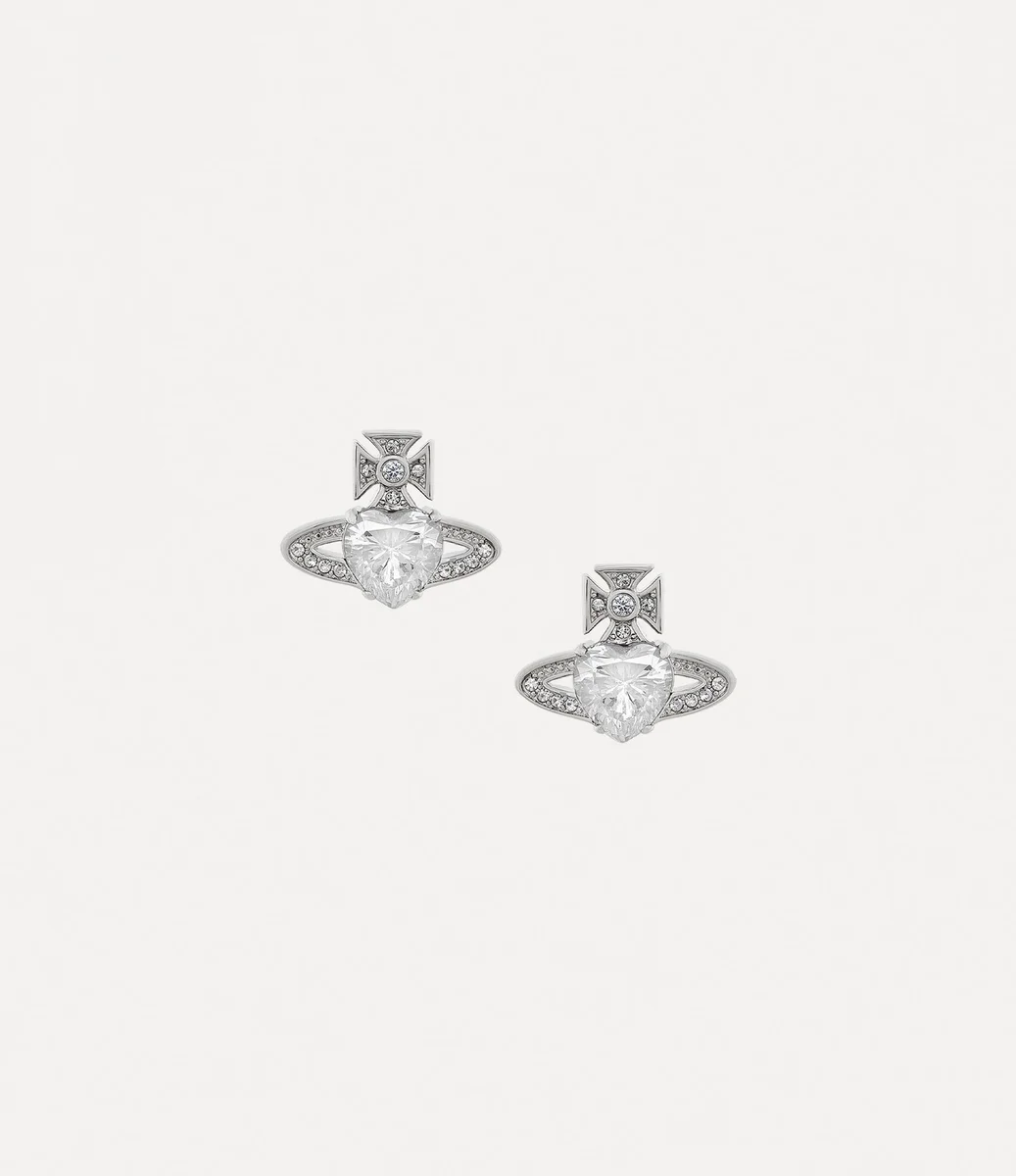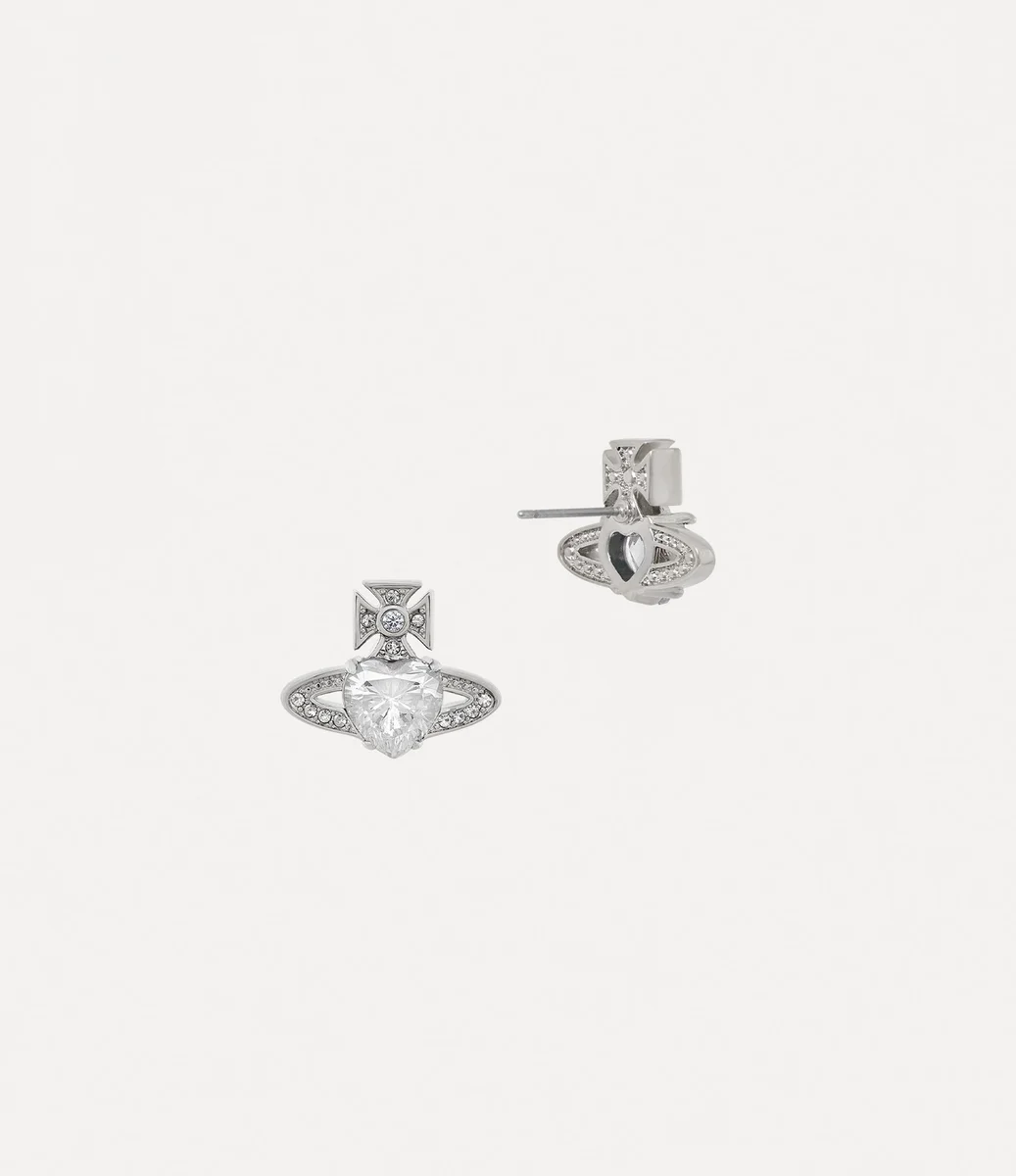 The silver-tone Ariella earrings feature a heart-shaped crystal in the centre of the design, recalling Vivienne’s affection for humanity and the planet, while Saturn’s ring encircles it as a symbol of the future. The piece is delicately finished with white crystal embellishments, complete with polished, silver-tone plating.
