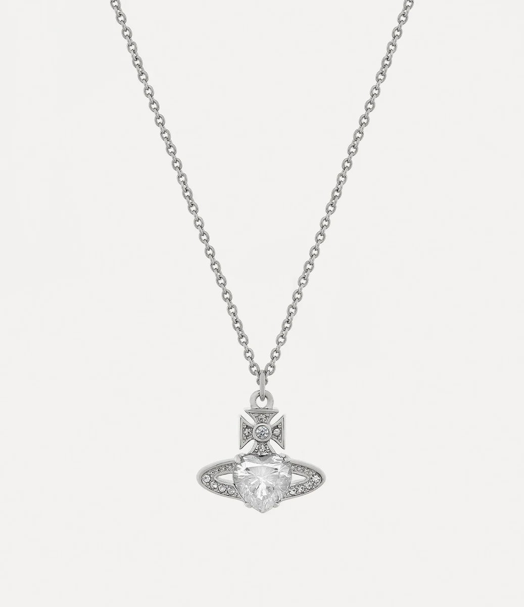 Vivienne Westwood Ariella Pendant necklace features a heart-shaped gemstone in the centre of the design, complete with a crystal-encrusted Saturn ring.