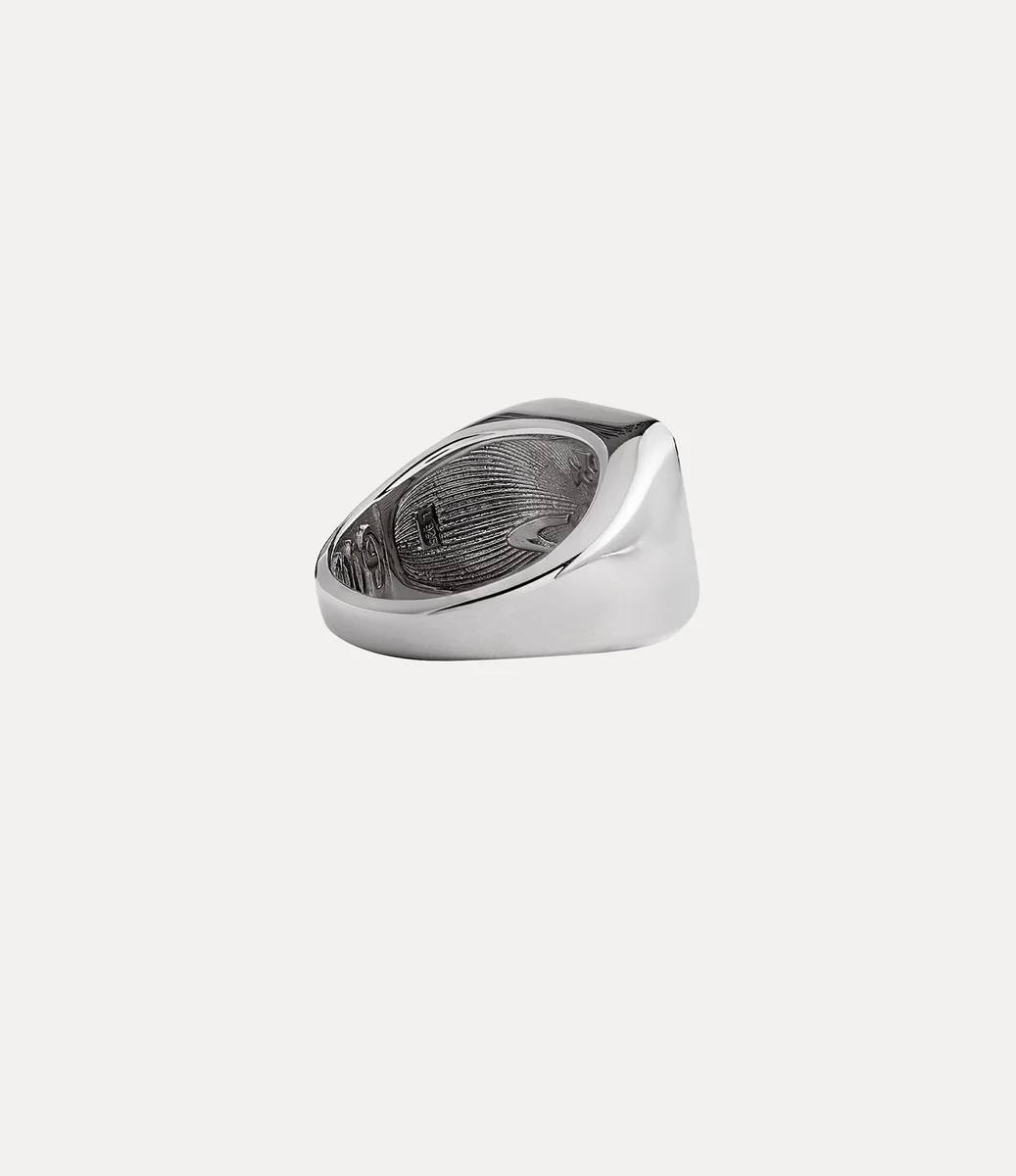 Our Carlo ring showcases a timeless signet silhouette, finished in platinum-tone silver. The square face is accented with a black crystal detail, complemented by an engraved orb motif symbolising tradition, and surrounded by the celestial rings of Saturn, representing the future.