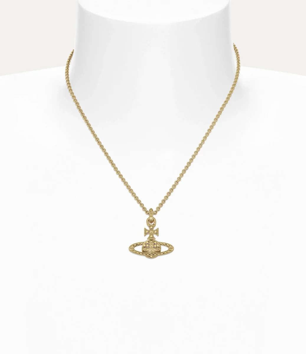 Vivienne Westwood Mayfair Bas Relief Pendant necklace features the signature orb pendant in the centre of the design, with studs and iridescent crystals.