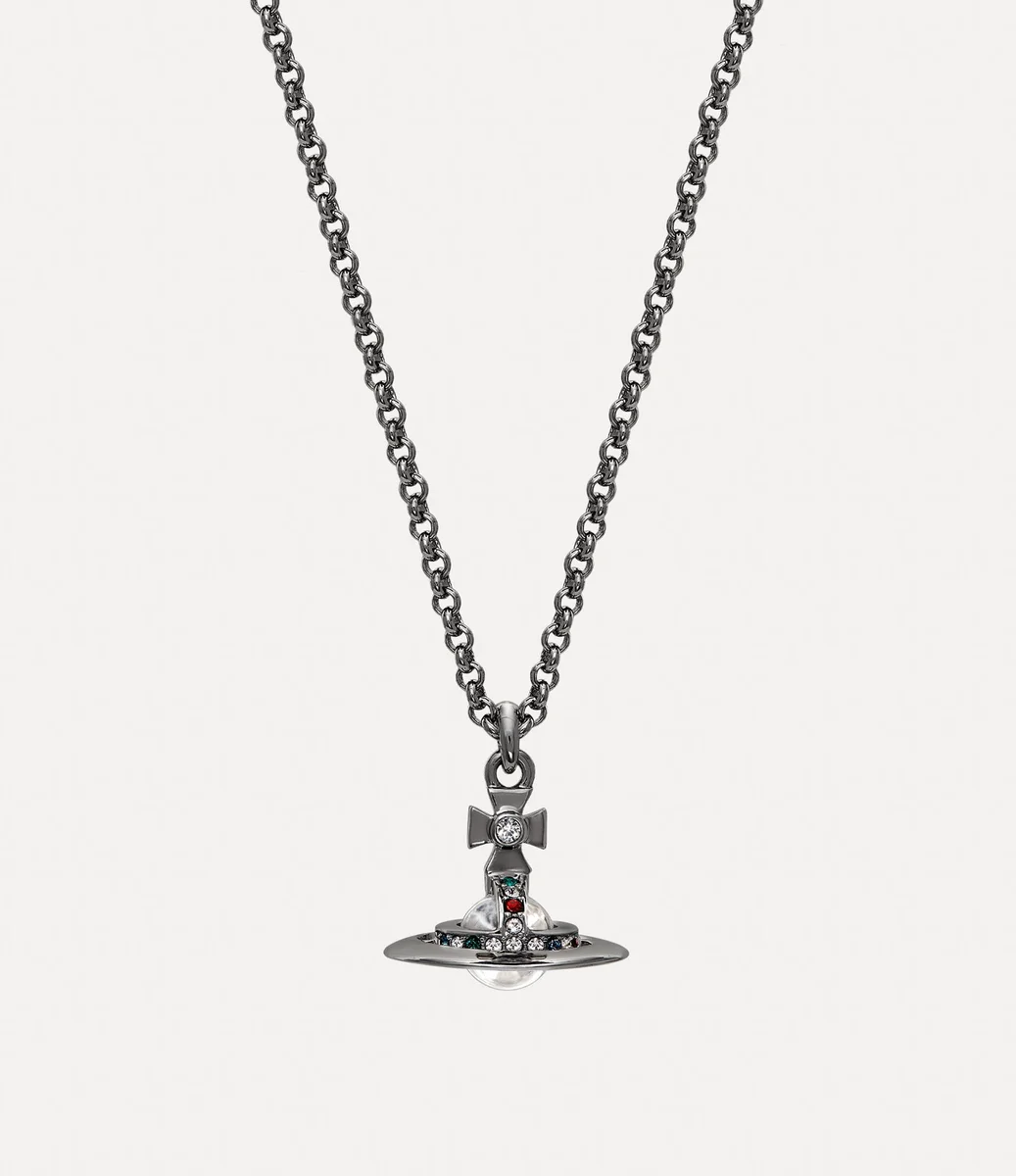Vivienne Westwood New Petite Orb Pendant necklace with gunemtal-tone plating features our three-dimensional orb, encrusted with multi-coloured crystal details.