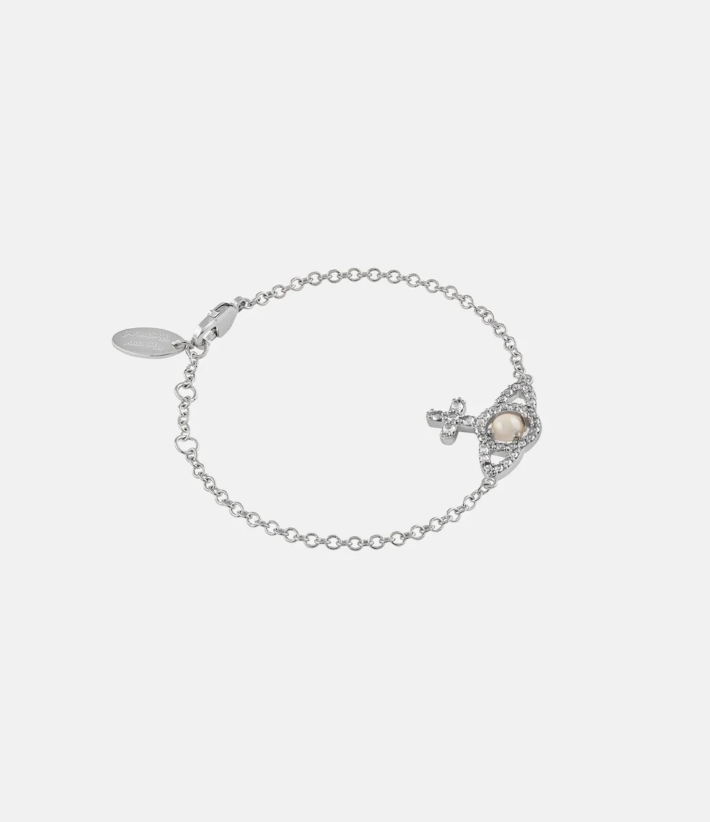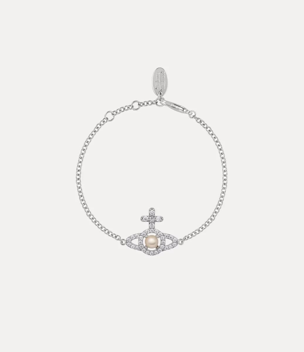 The orb charm featured in the Olympia Pearl Chain bracelet embodies Vivienne’s vision of taking tradition into the future. The iconic orb design is accentuated with white crystal details, complemented by a glistening glass-based pearl at the centre of the piece.