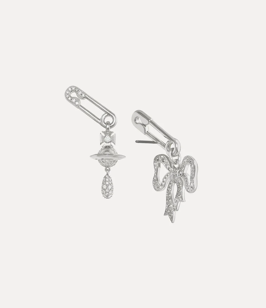 Our Lilith earrings reveal the house’s signature iconography, featuring an orb and bow motif, each suspended from a delicate safety pin-inspired silhouette. Intricately detailed with sparkling crystals throughout, the design is finished with a custom butterfly back and post closure.
