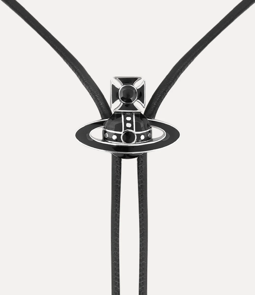 Vivienne Westwood Bolo tie is reimagined with a stitched leather cord and features an adjustable orb-shaped centerpiece, completed with silver-toned tips.