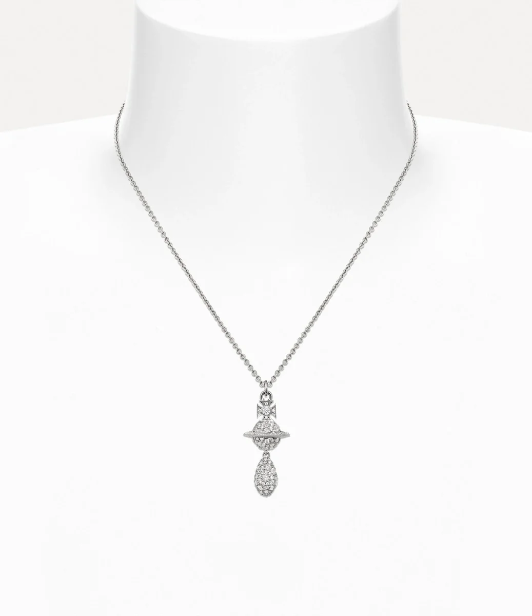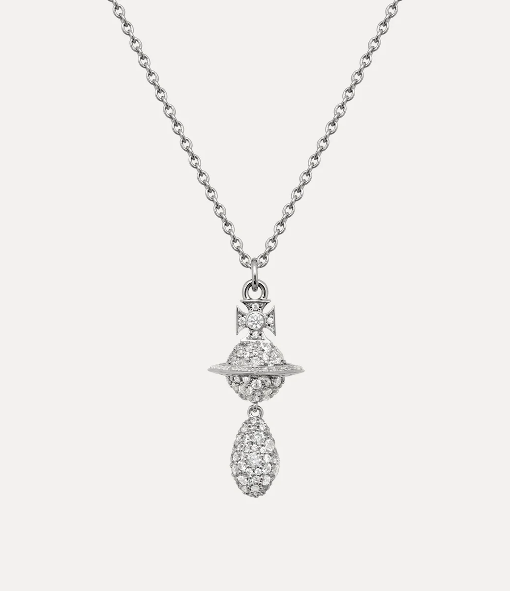 Vivienne Westwood Circe Orb Pendant necklace features the classic orb encrusted in pavé crystals, finished with a teardrop pearl and a lobster clasp closure.