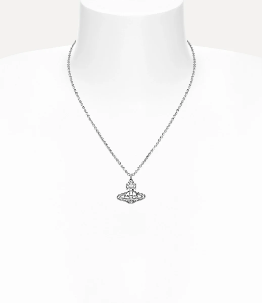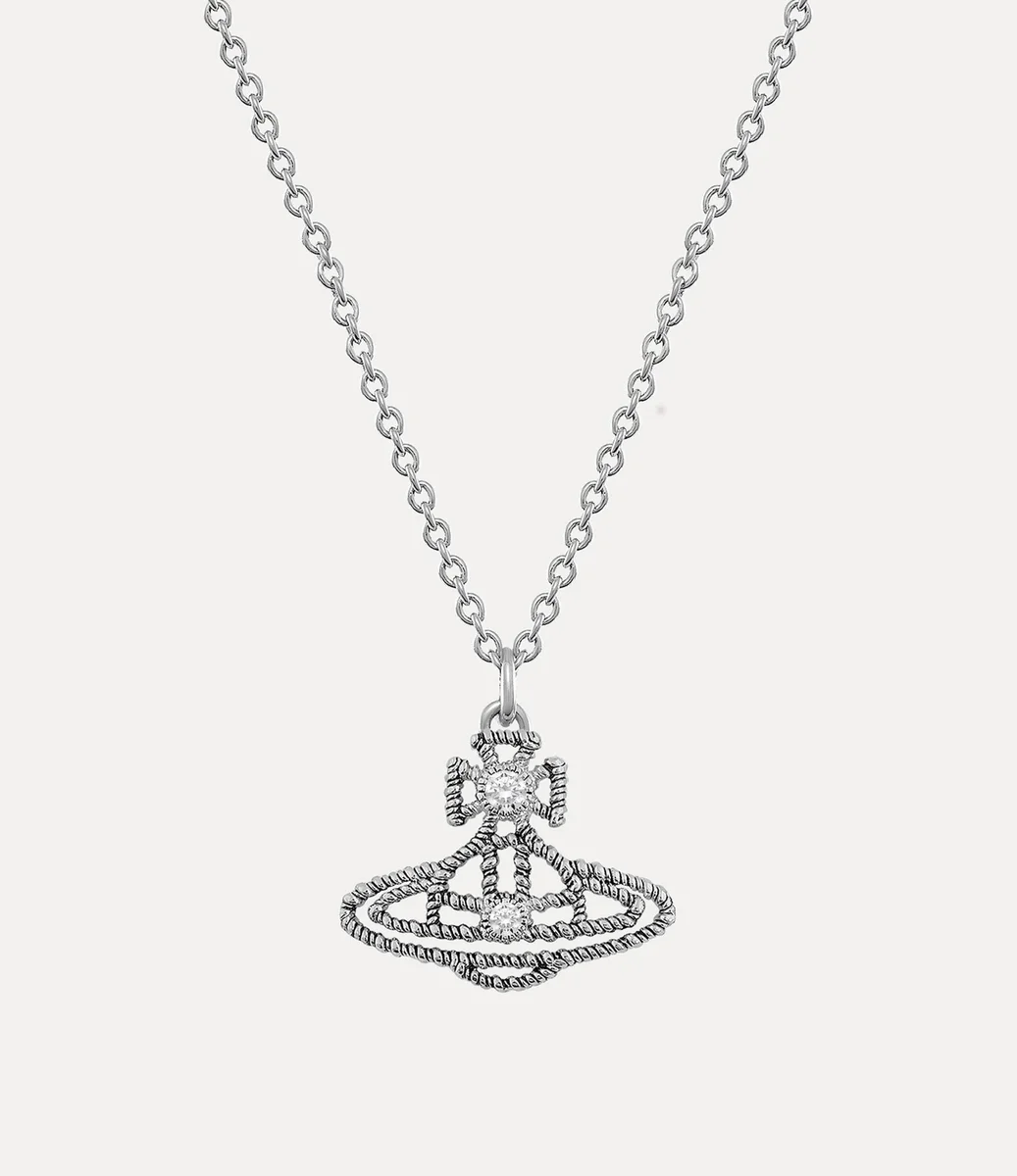 Vivienne Westwood Coretta Pendant necklace revives the house’s orb silhouette designed with a twisted rope detailing and light patina to highlight the texture.