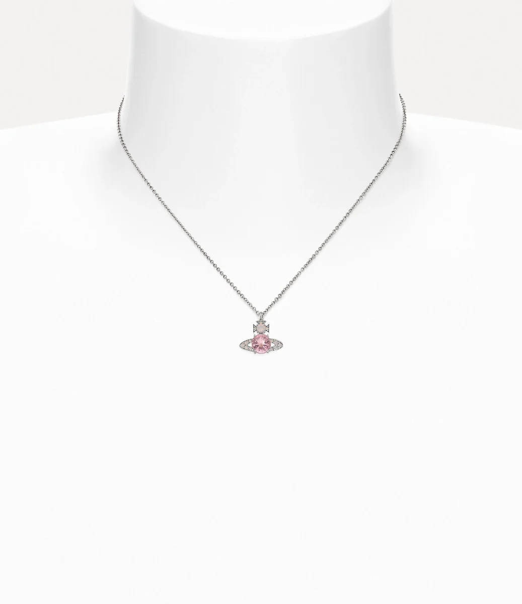 Our Ismene Pendant necklace is offered in polished, silver-tone plating this season. The design features glistening pink crystal details, complete with a lobster-clasp closure and an embellished orb motif in the centre of the design, reflecting Vivienne’s vision of launching tradition into the future.