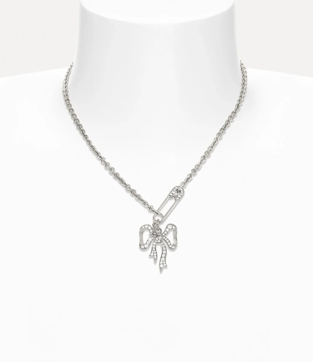 Vivienne Westwood Lilith Pendant necklace features silver-tone plating, complete with a bow and safety pin silhouette.
