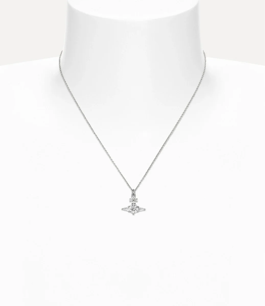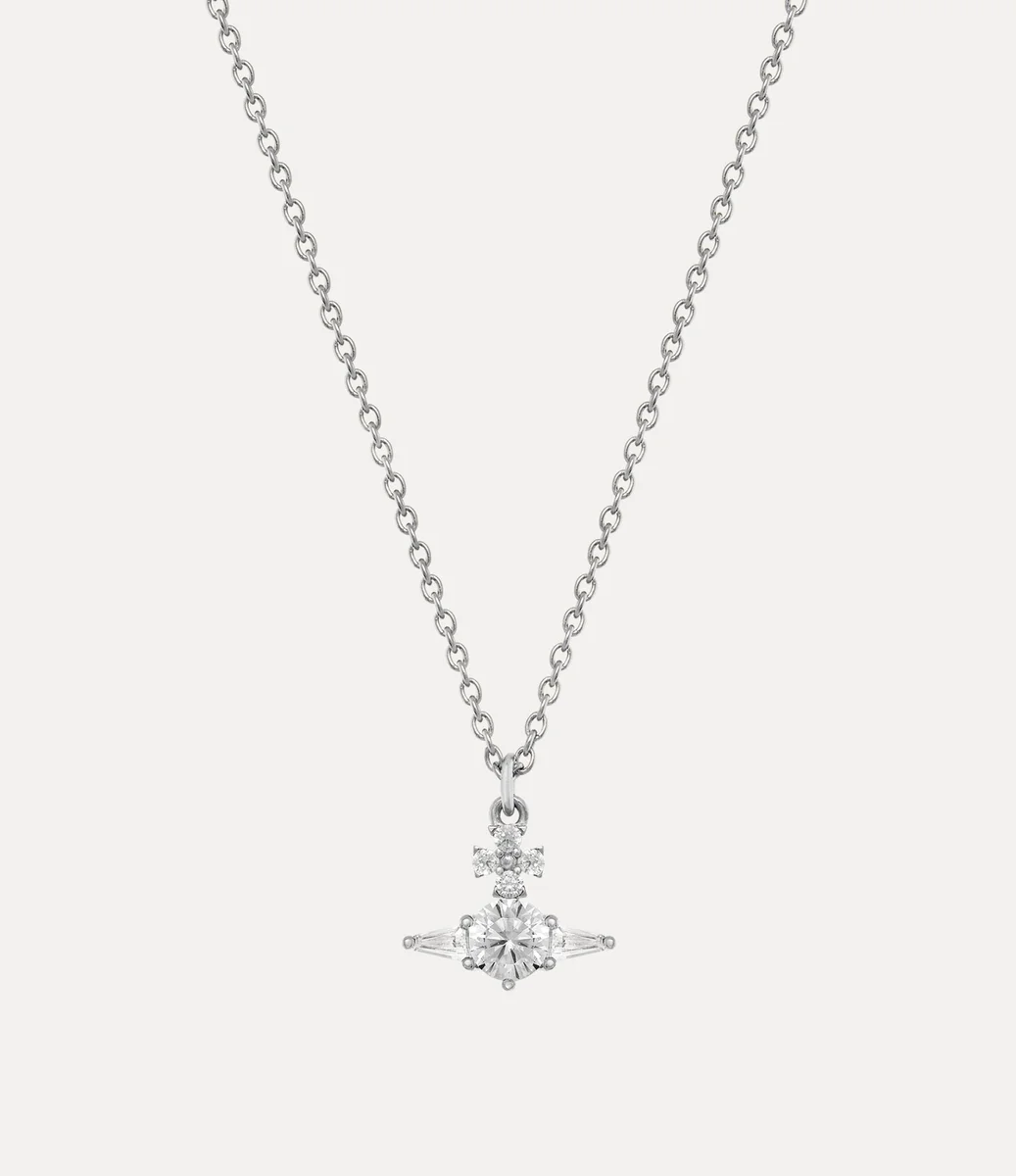 Vivienne Westwood Ofelia Pendant necklace features a two-dimensional orb in the centre, encrusted with round and tapered cubic zirconia baguette crystals.
