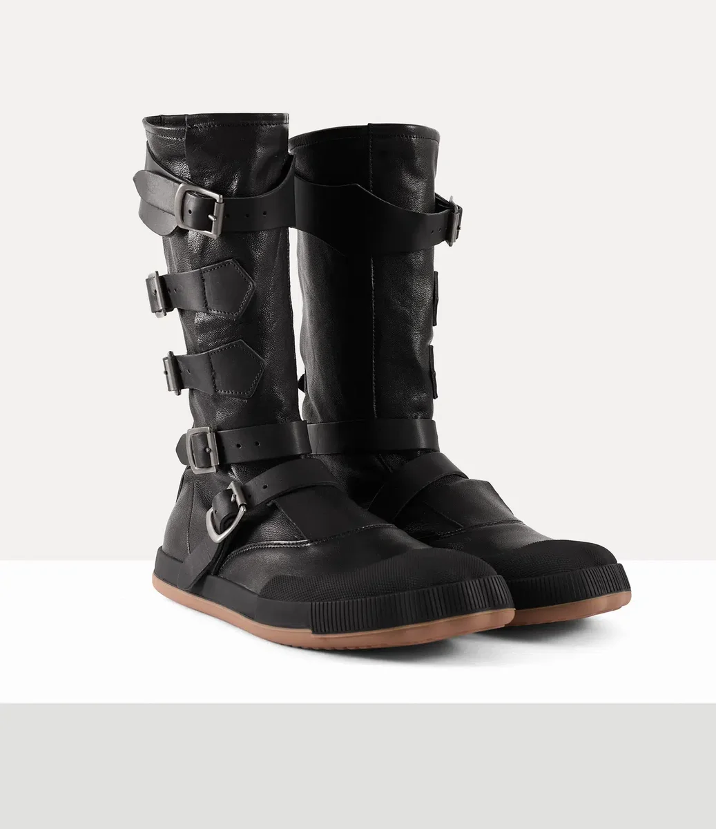 Our signature Pirate boots, first revealed in the Autumn-Winter ‘Pirate’ collection from 1981, were designed to capture the rebellious spirit of 17th and 18th-century pirate tales. This season’s Animal Pirate boots pay homage to the original design, featuring a slouchy leather profile with oversized buckles, complete with an animal-inspired toe shape – a signature detail from the house’s archives.