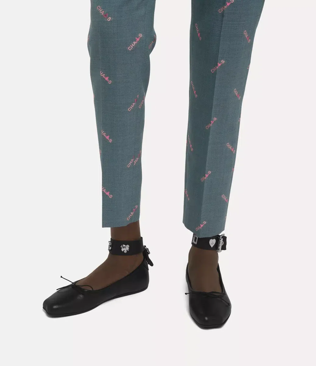Our Bardot Ballerina shoes feature an detachable ankle strap, adorned with hearts, fig leaves and horseshoe motifs, honouring signature iconography of the house. The piece offers an anatomical silhouette, reminiscent of the house’s signature ‘Animal Toe’ motif, first revealed in the Spring-Summer 2000 collection, ‘Summertime’.