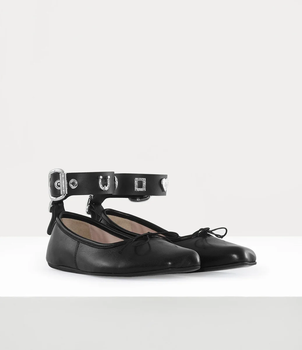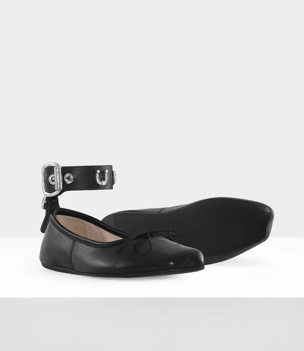 Vivienne Westwood Bardot Ballerina shoe is crafted from leather and features an anatomical silhouette, complete with detachable ankle straps.