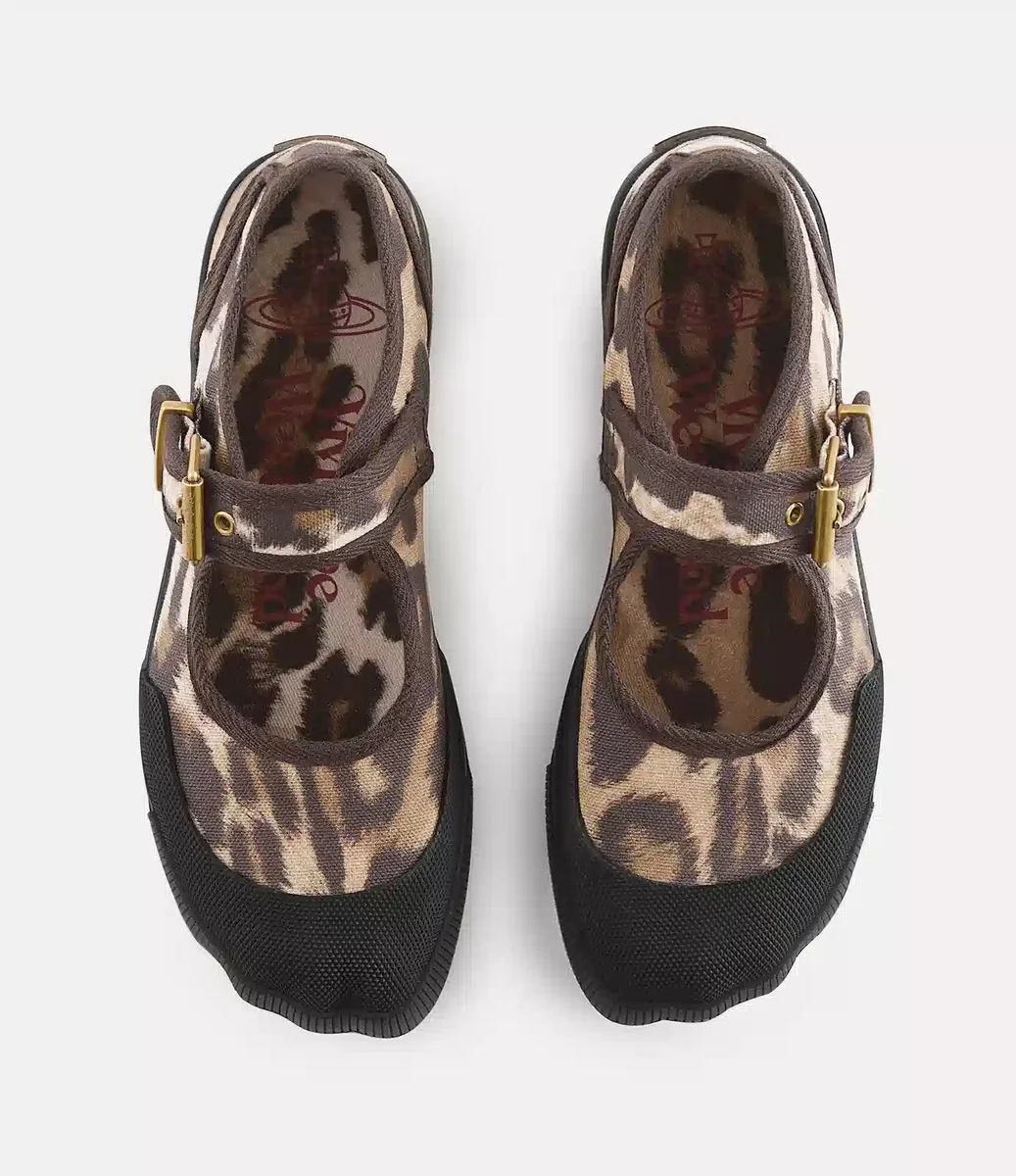 The Animal Gym Bar shoes are reimagined this season in an all-over leopard print, echoing Vivienne’s Autumn-Winter 2001 ‘Wild Beauty’ collection. Featuring the house’s archival ‘Animal Toe’ design – resembling a lion’s paw or a mythical creature – they’re finished with the iconic orb at the heel, symbolising the ethos of propelling the past into the future.